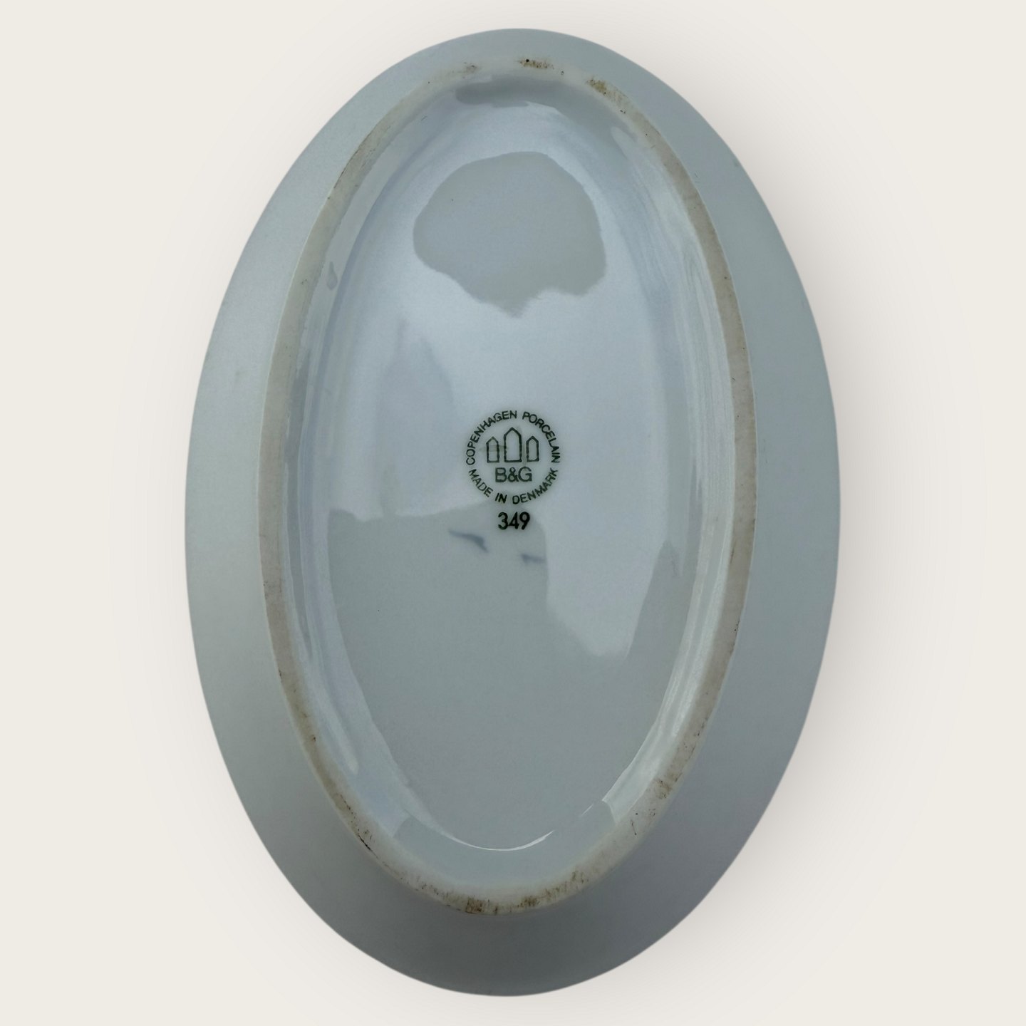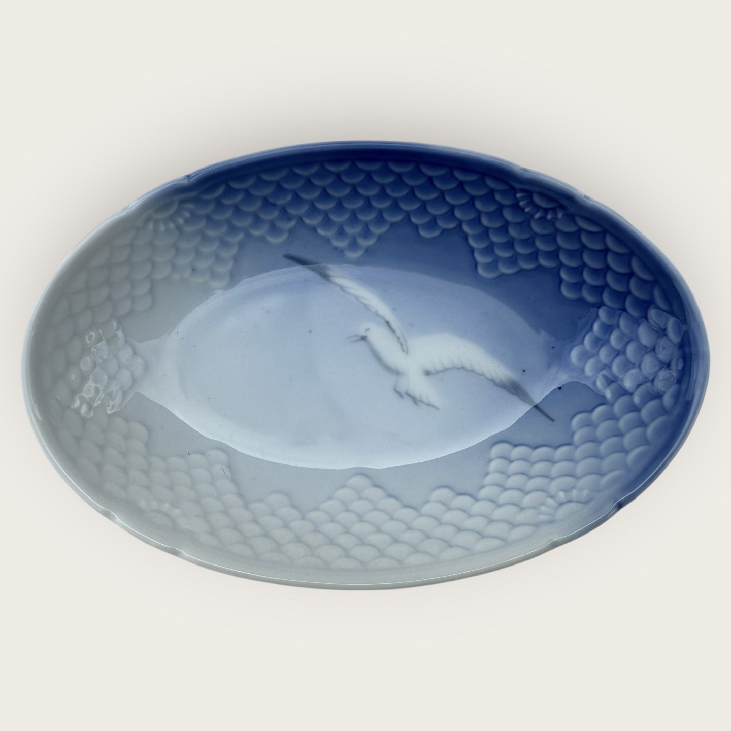 Beskrivelse: Bing & Grøndahl, Mågestel uden guld, lille serveringsskål, 2. sortering #349, 18x12cm, Design Fanny Garde *Pæn stand*