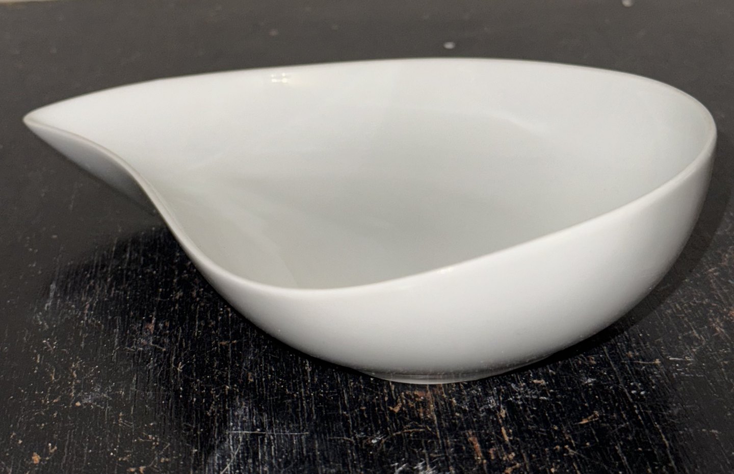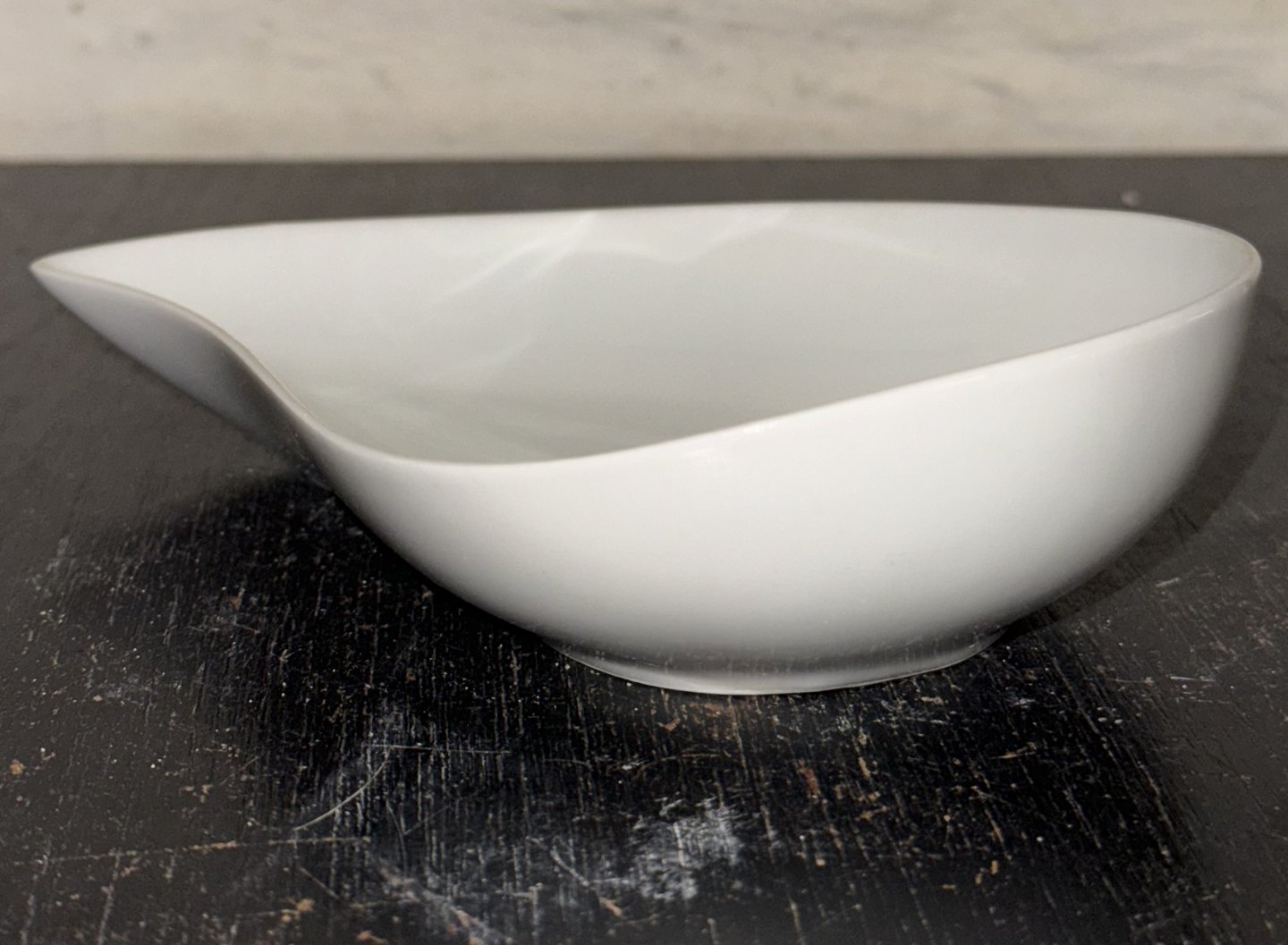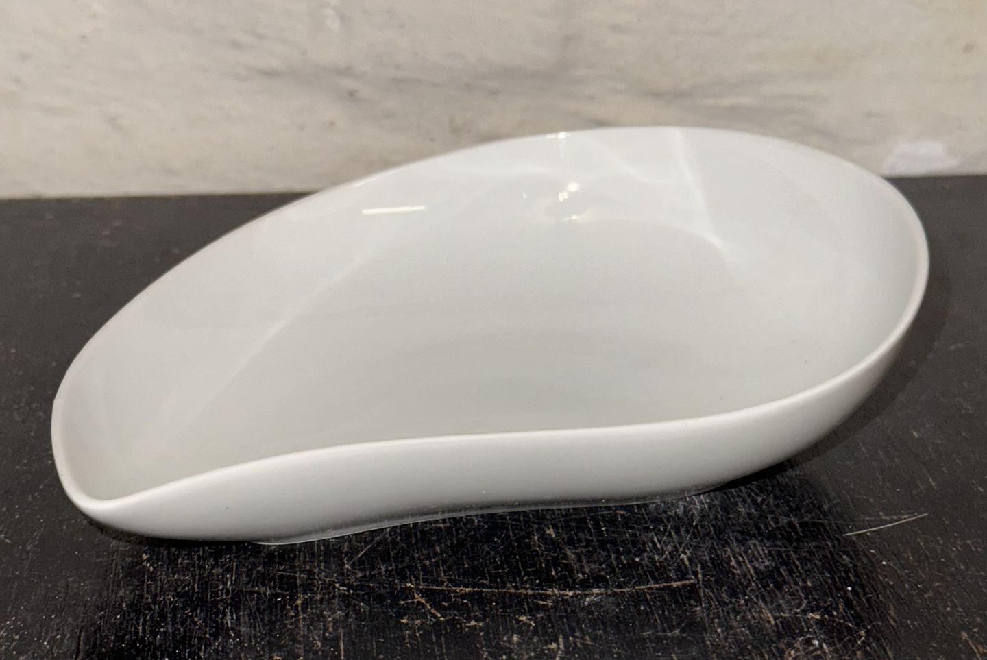 Beskrivelse: HENNING KOPPEL: Nyreformet skål i hvidt porcelæn fra Bing og Grøndahl. Fremstillet på B&G fabrikken. I god stand. Ingen skader eller reparationer. 1.sortering. Fabriksmærket på bunden sammen med modelnummer 38. Mål: H. 4,2 cm L. 16,4’cm B. 12 cm
