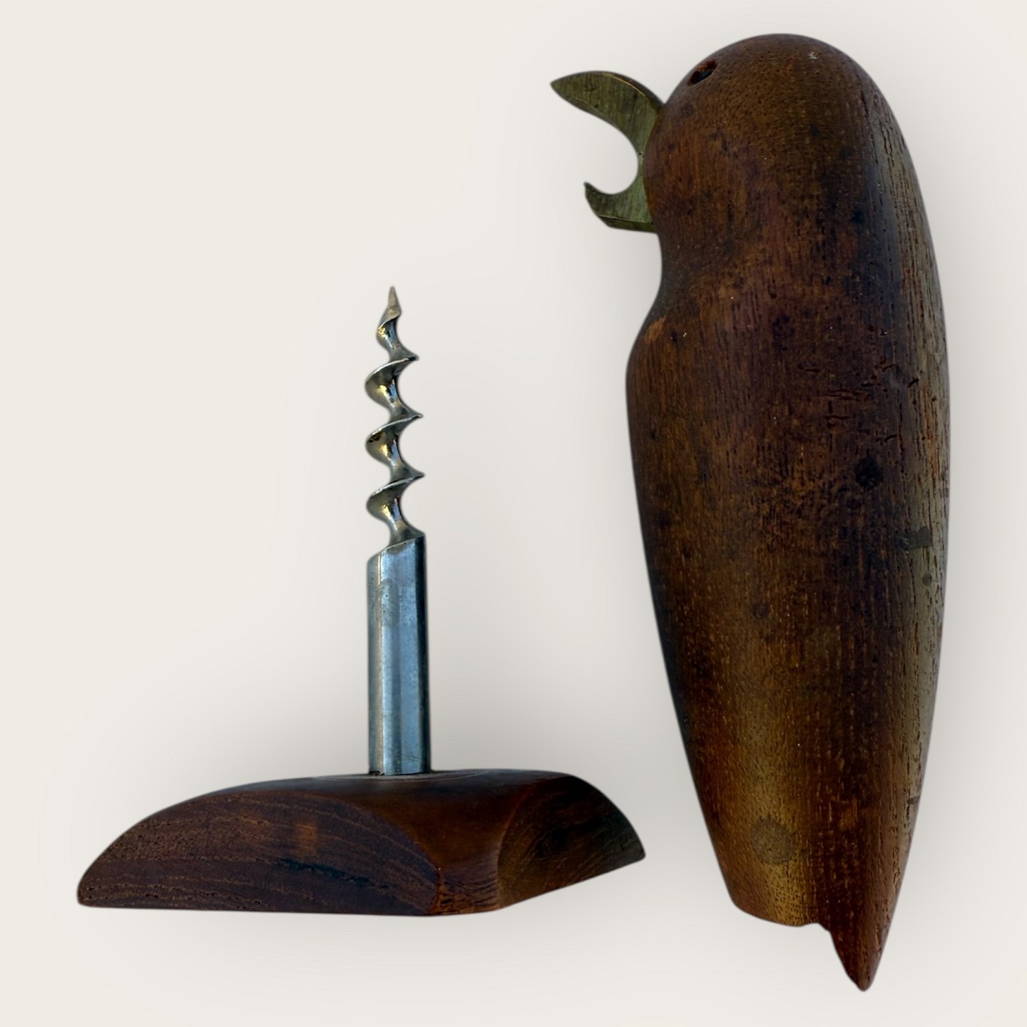 : Øloplukker og proptrækker i teaktræ fra 1960'erne, pæn stand, Mål: 12,5x7,5cm