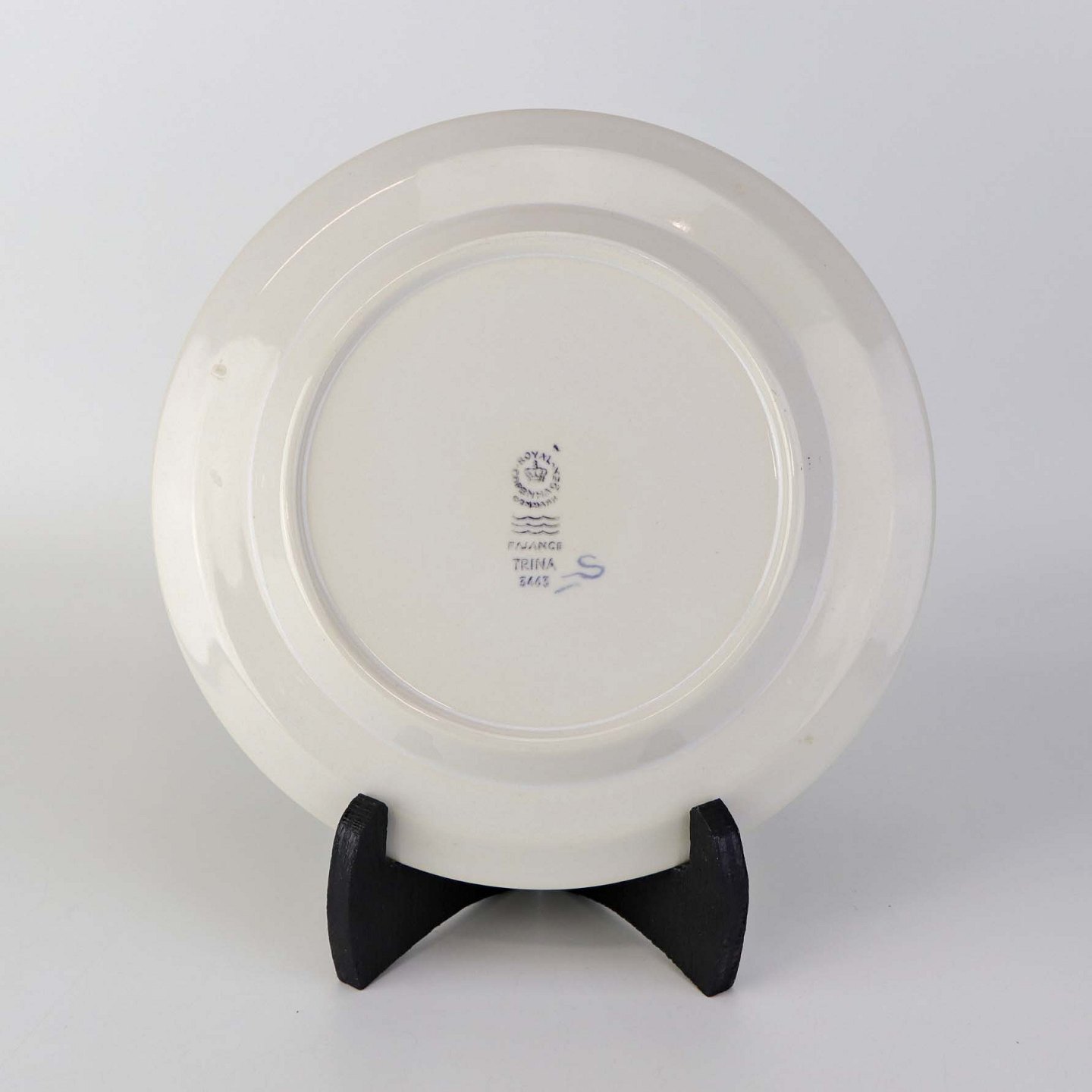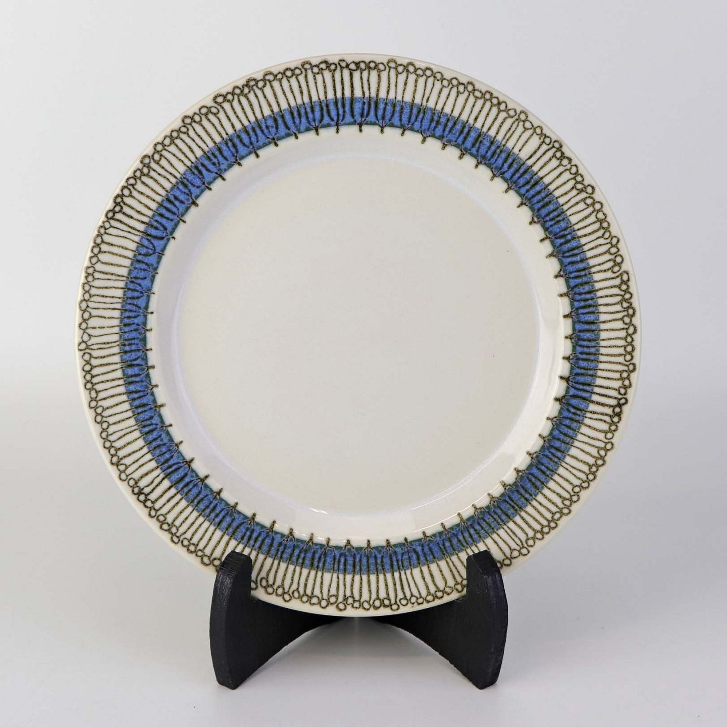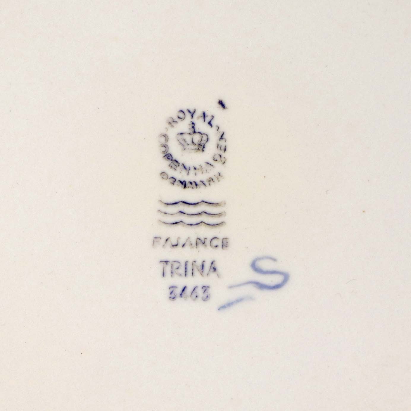 Beskrivelse: Frokosttallerken i kongelig fajance fra stellet Blå Trina. Nr. 3463