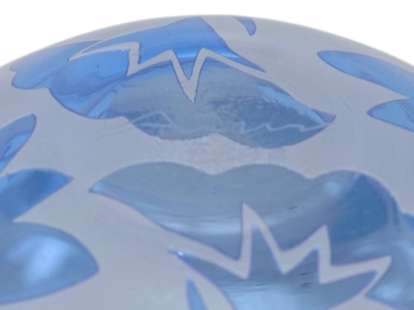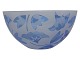 Beskrivelse: Holmegaard, skål med matteret glas og lyseblå blomster.