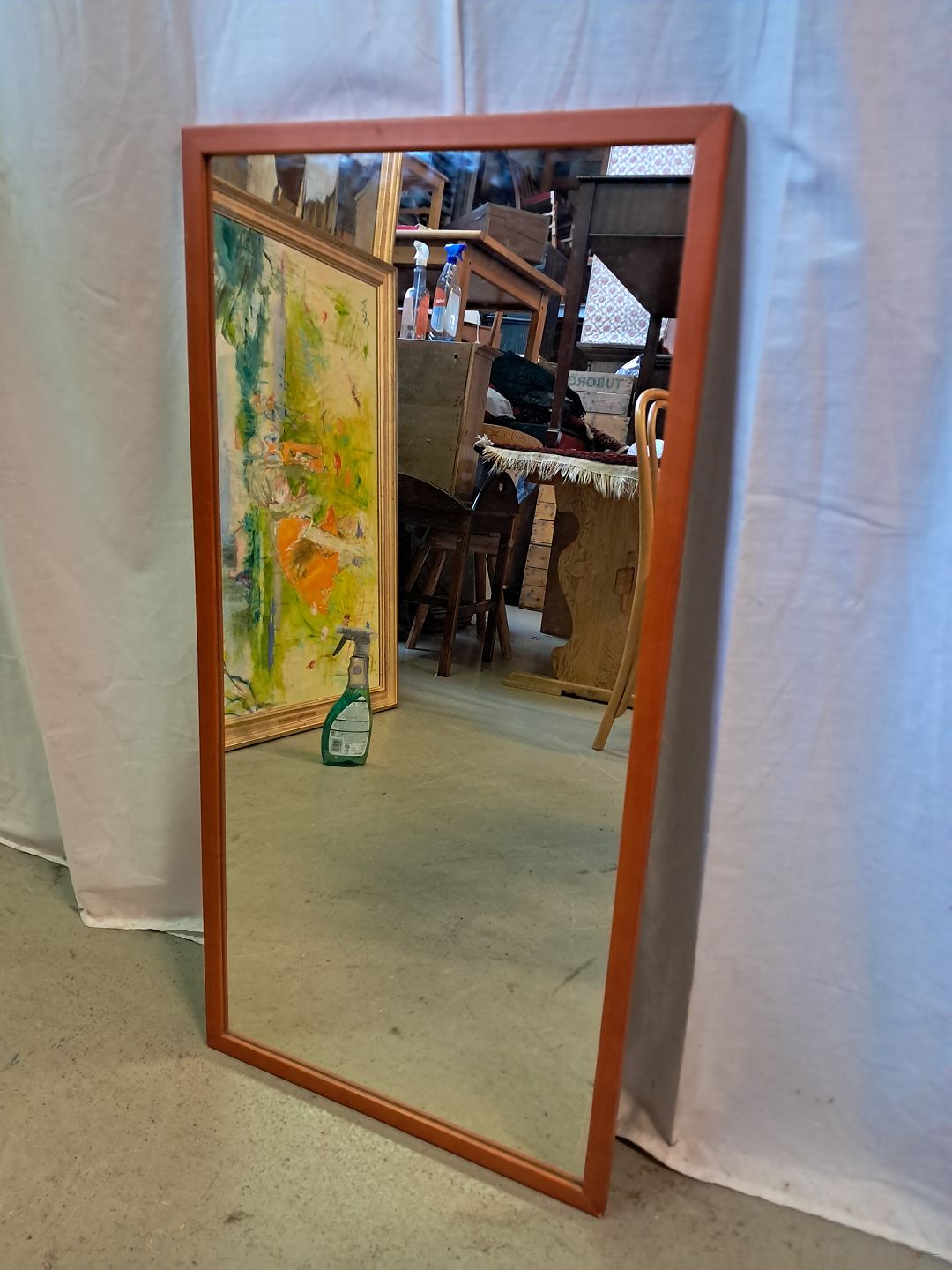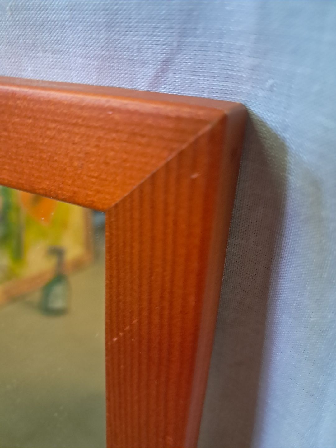 Beskrivelse: Spejl i massivt og bejdset fyrretræ, fra 1980erne.