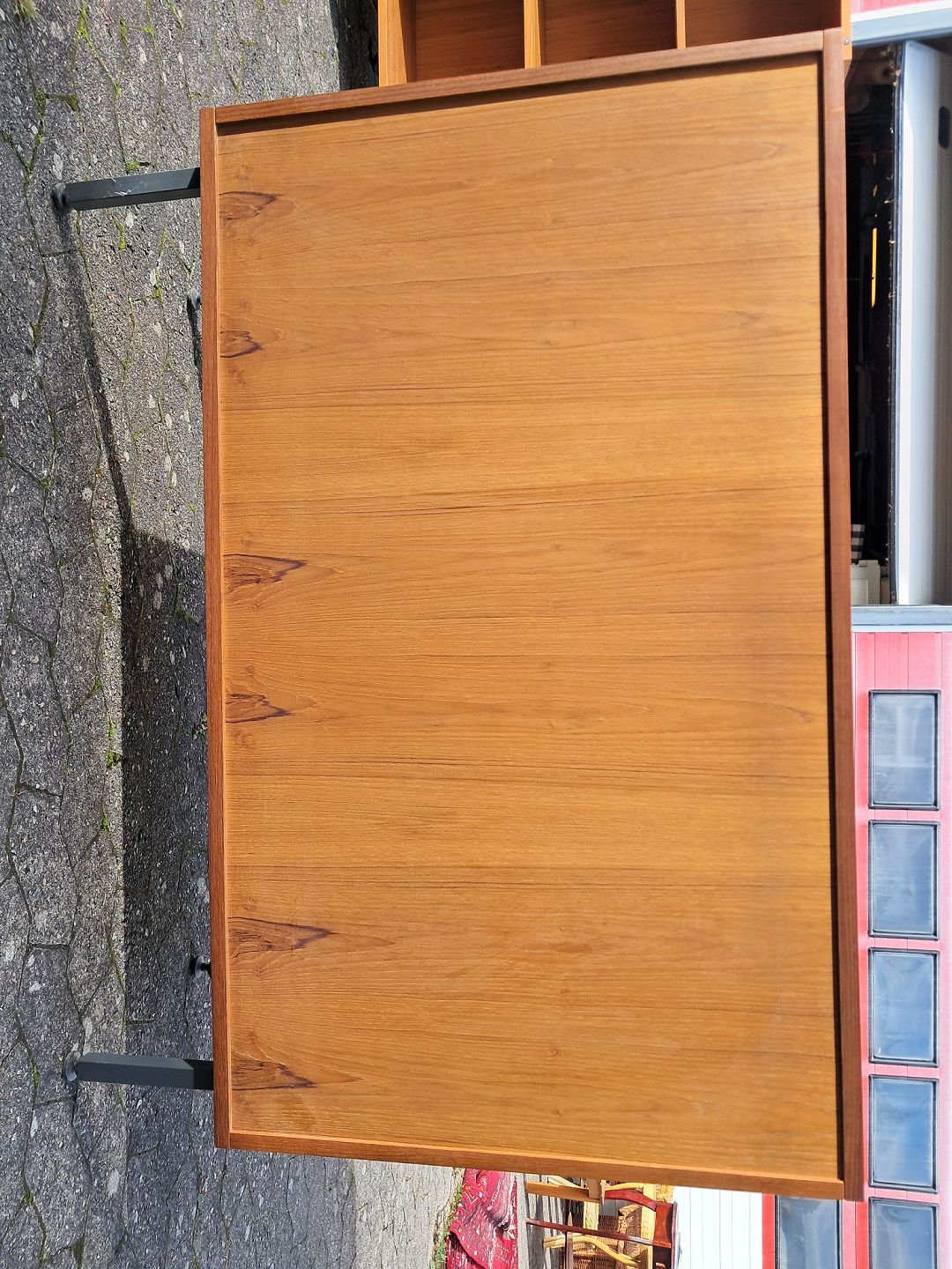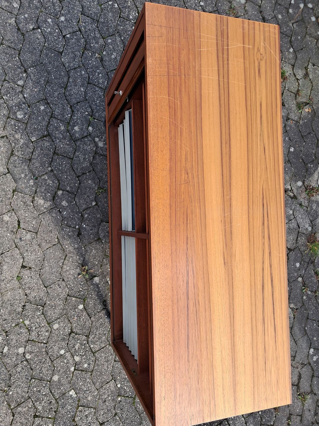 Beskrivelse: Jalousi skab i fineret teaktræ, fra 1970erne.