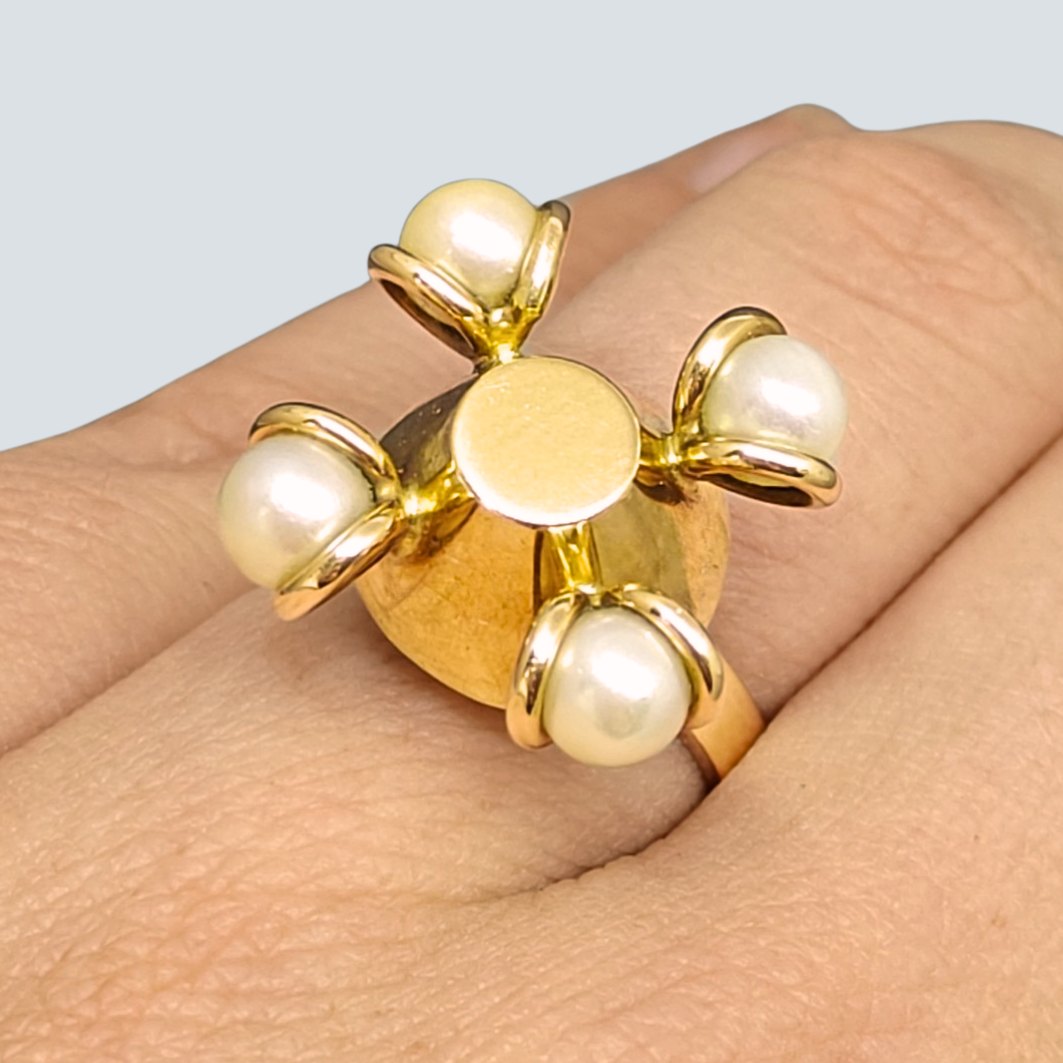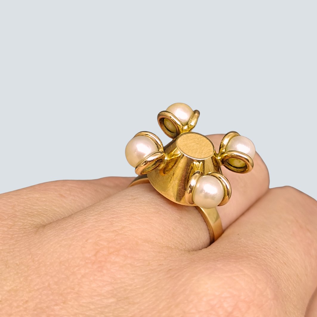 Jens Asby; Ring i 14 kt. guld med fire perler