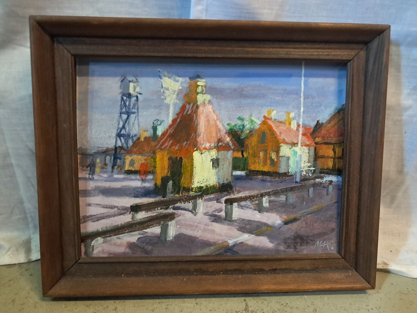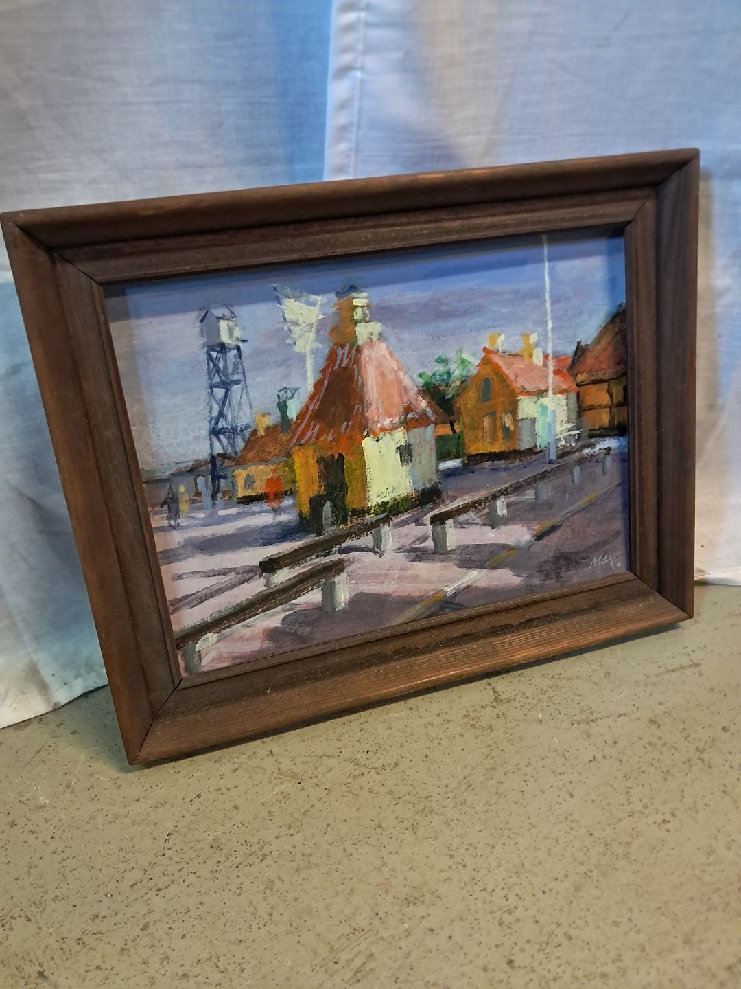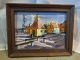Beskrivelse: Maleri af Dragør Havn i fyrretræs ramme, af : Mogens Amdi Thorsen (1924-2016)