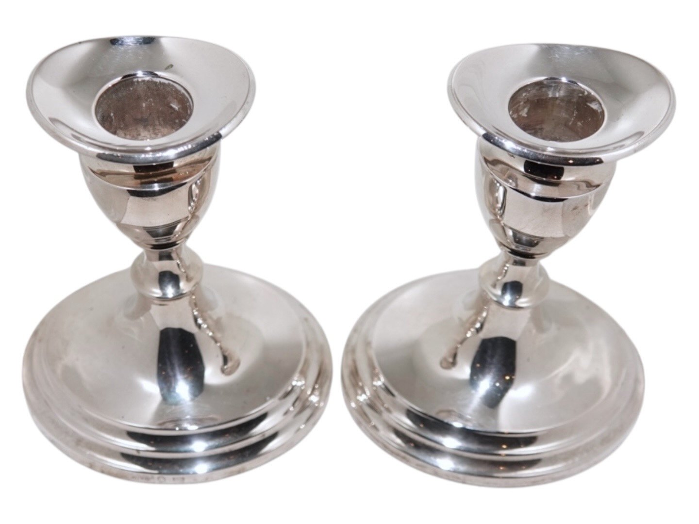 Beskrivelse: Willy Vollmers sølv, par lysetager med aftagelig lysmanchet.