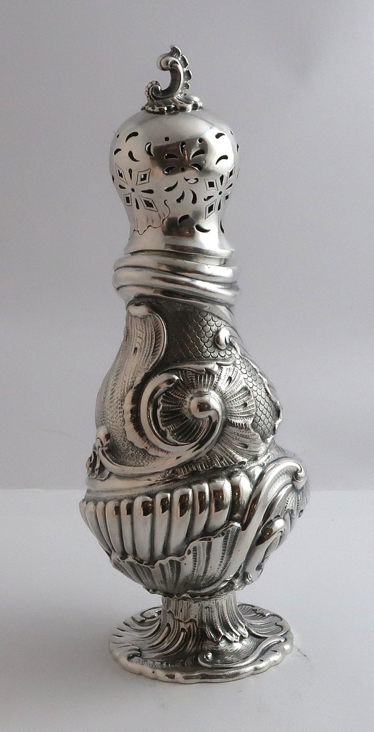 Beskrivelse: Michelsen. Sølv sukkerstrøbøsse (830). Højde 24 cm. Produceret 1897. Meget god kvalitet.