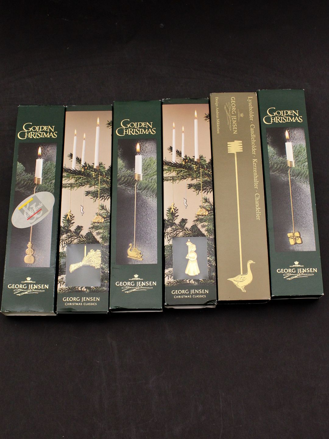 Beskrivelse: Georg Jensen sæt på 6 jule lysholdere i originale æsker emne nr. 623551