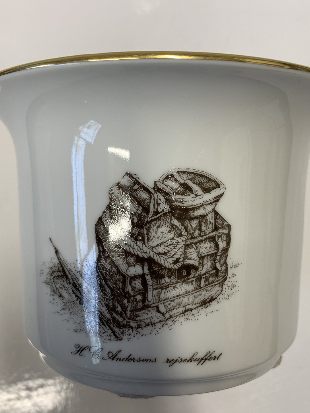 Bing & Grøndahl H.C. Andersen urtepotteskjuler med guldkant.