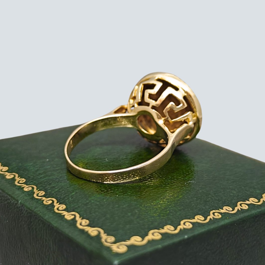 Beskrivelse: Ring i 14 kt. guld, med motiv af hoved i profil.