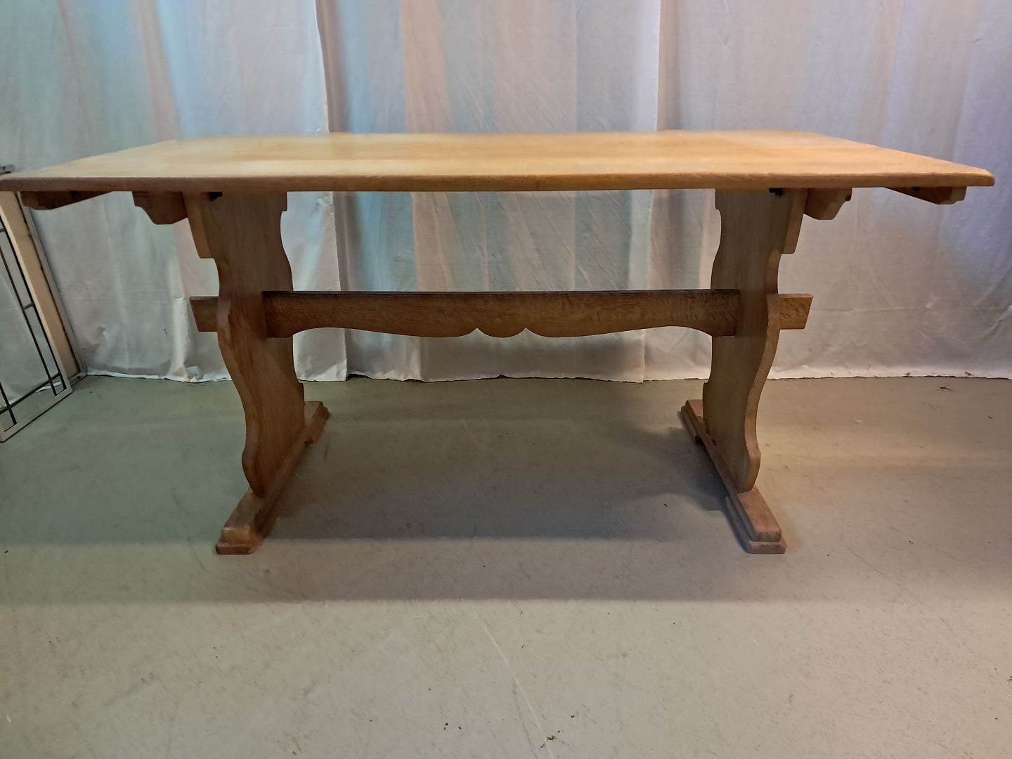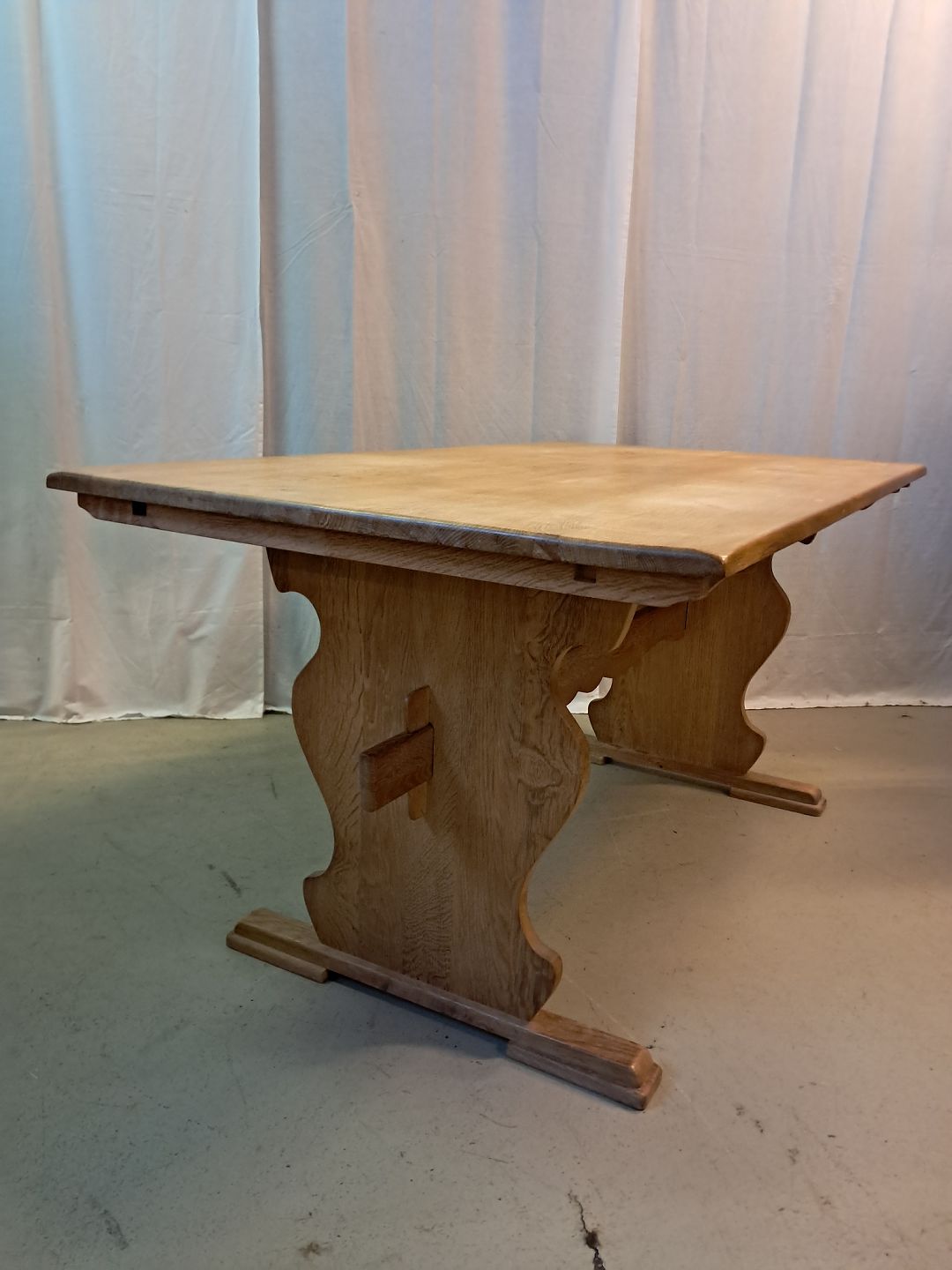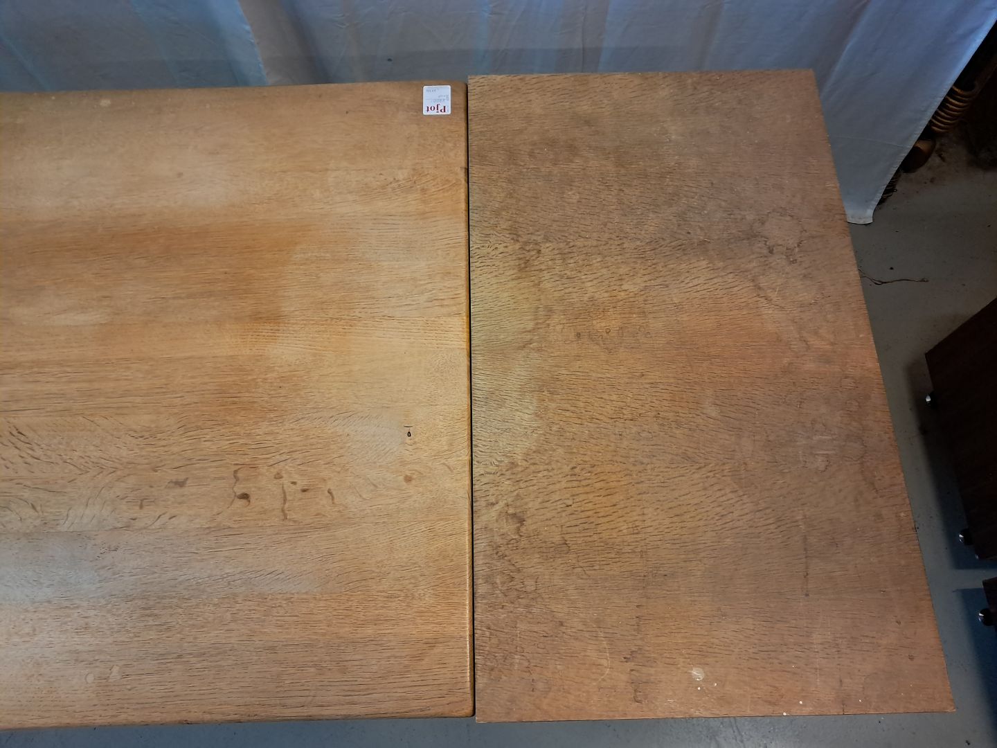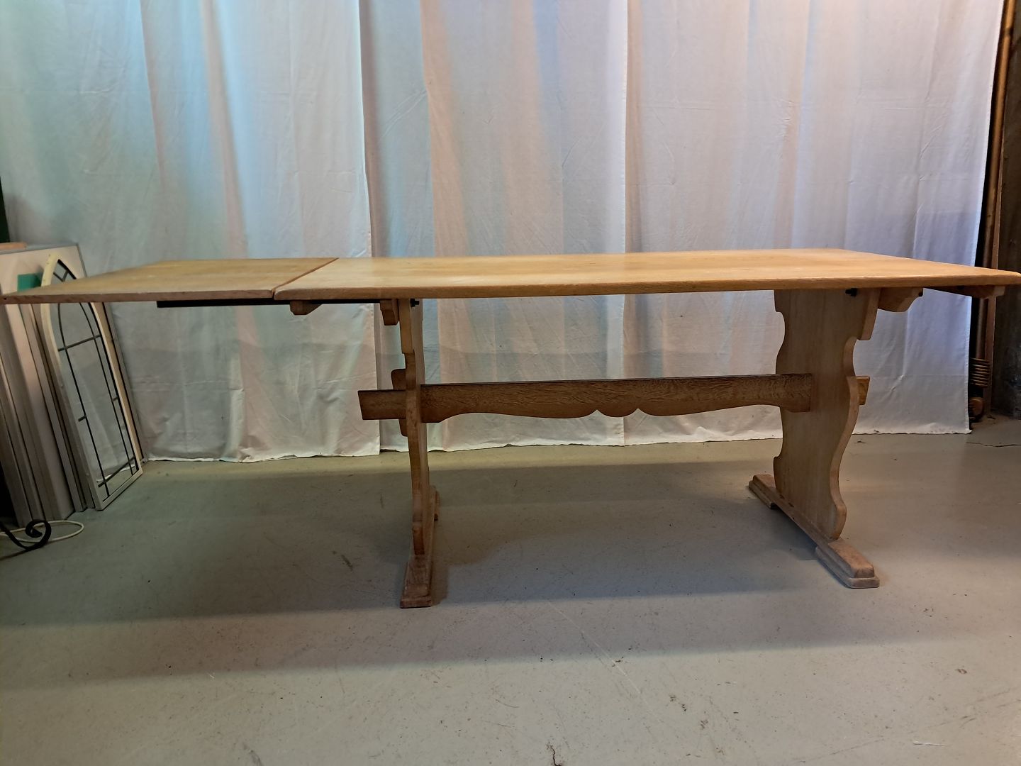Beskrivelse: Plankebord i massivt egetræ med 2 tillægsplader, fra 1980erne.