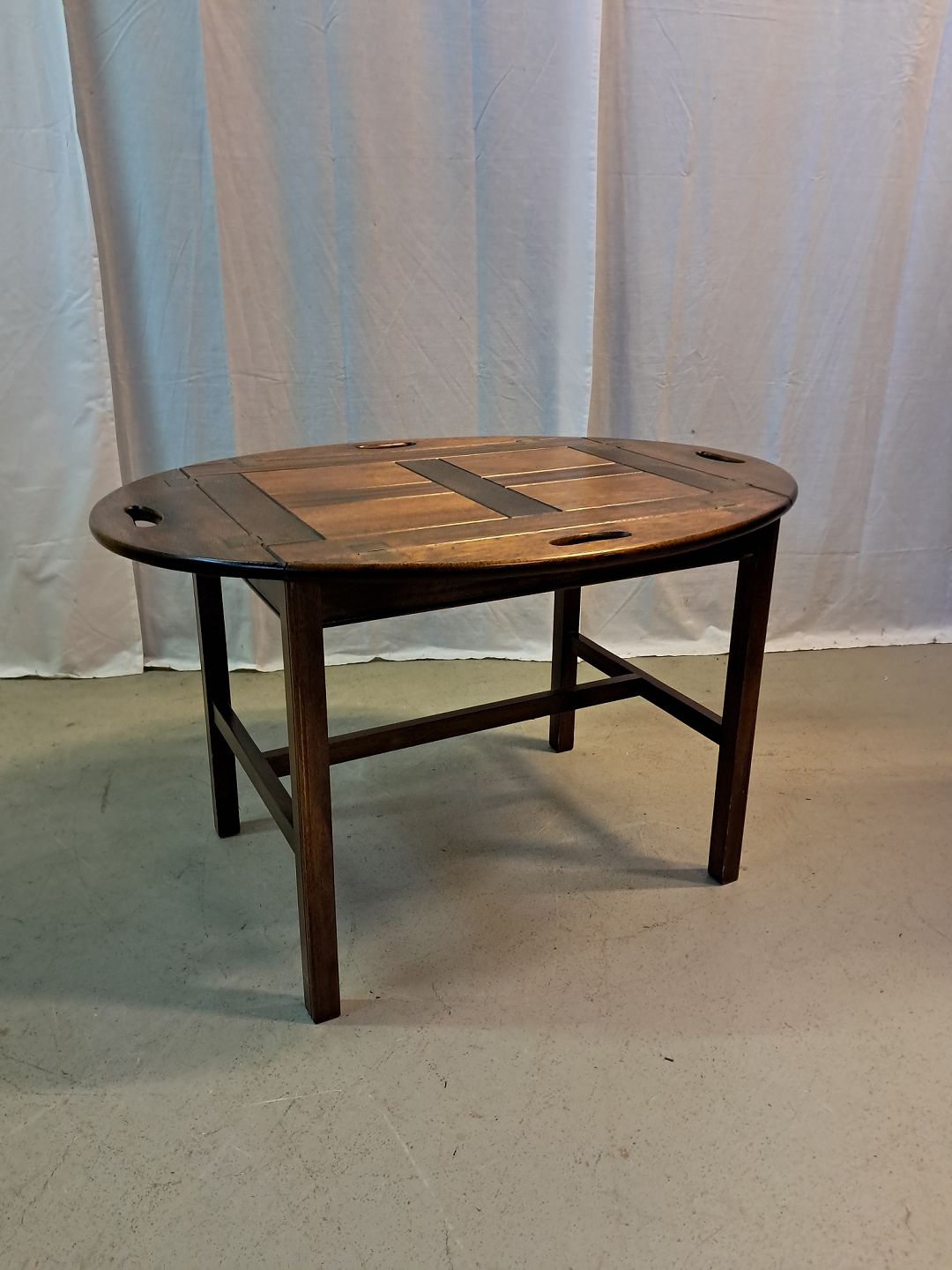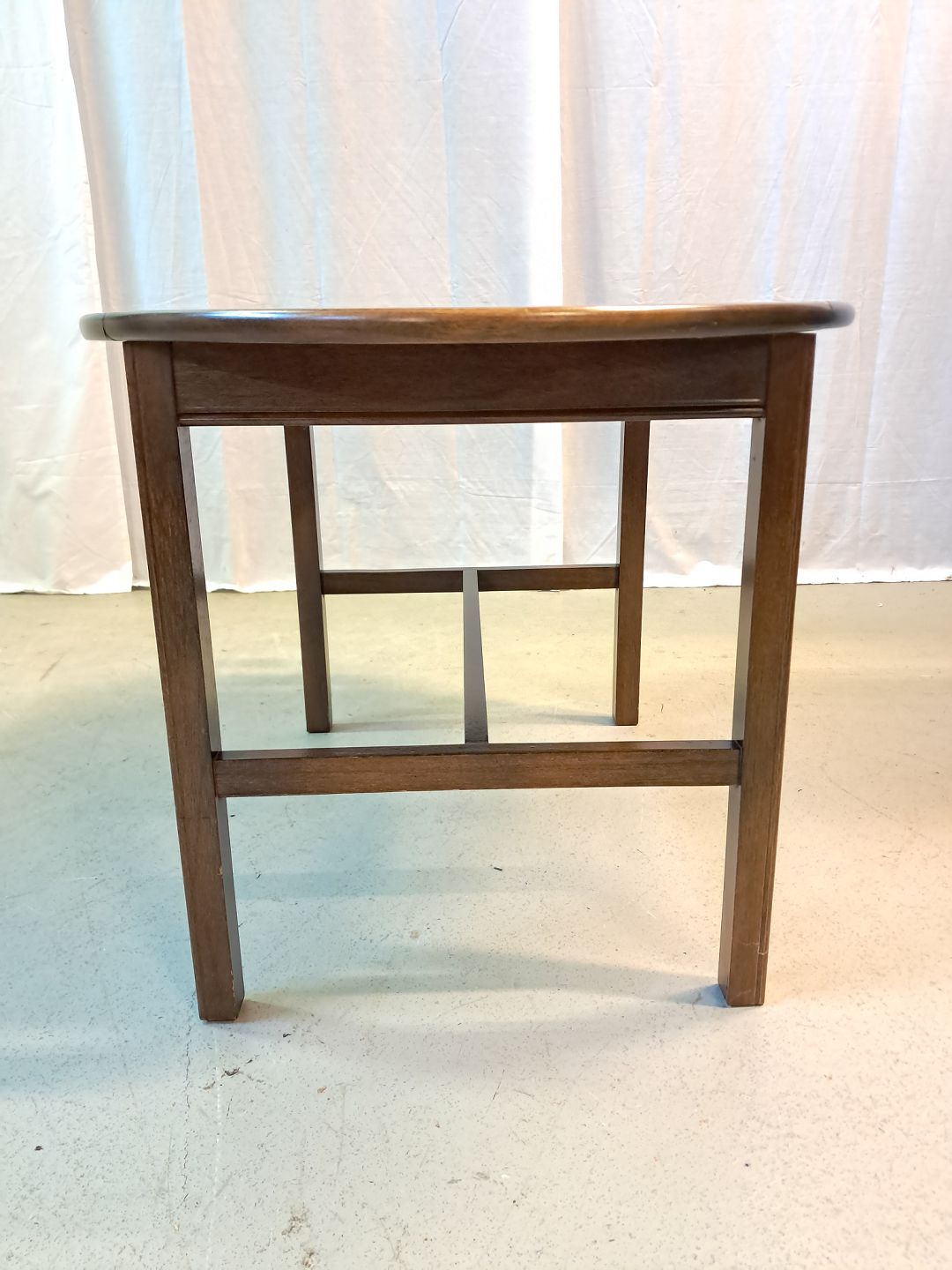 Beskrivelse: Sofabord i fineret mahogni, fra 1980erne.