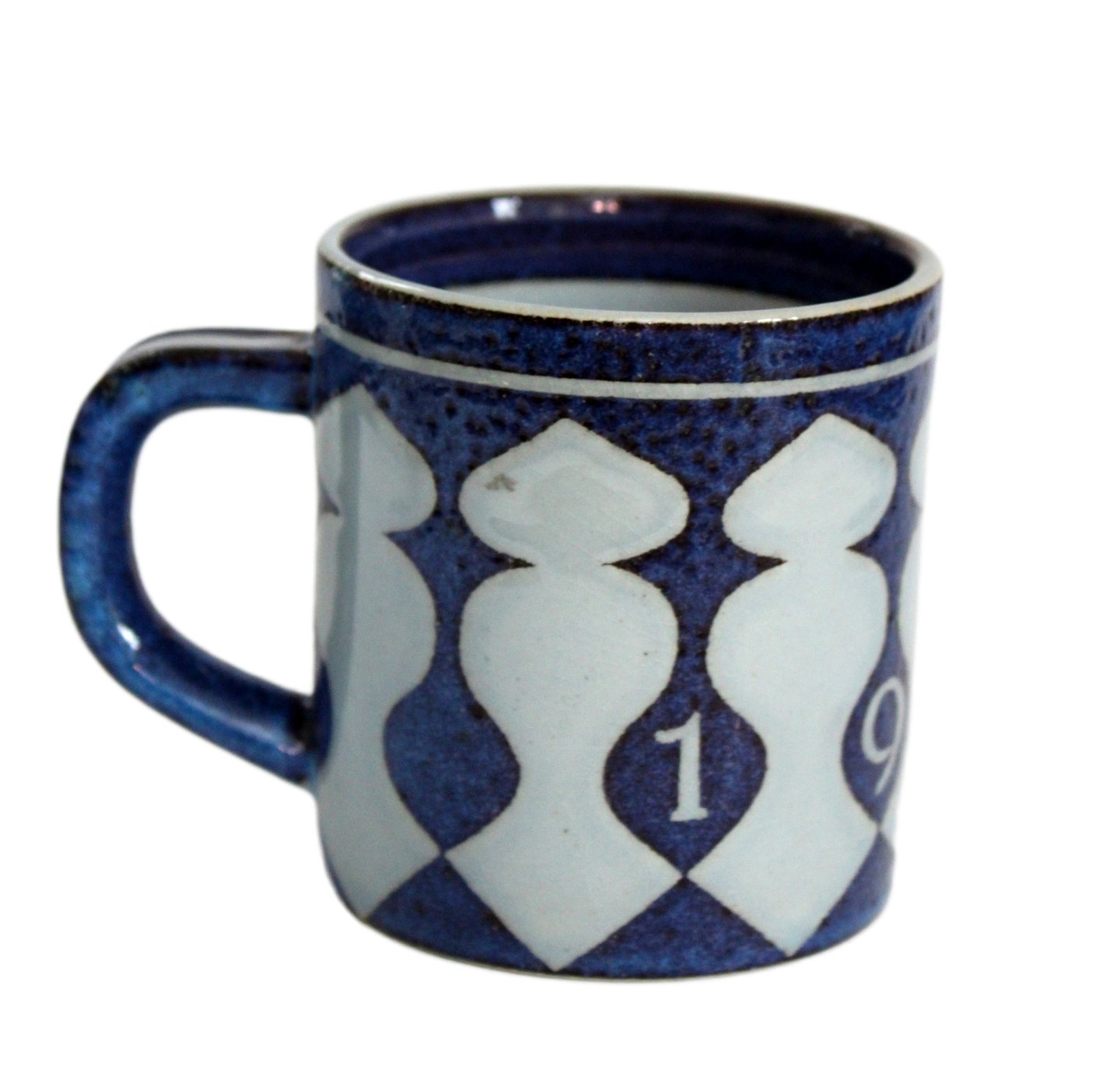 Beskrivelse: Aluminia, Lille årskrus i kunstfajance. Designer Nils Thorson. Dette er det første årskrus. Nr. 3495. Årskrus er produceret fra perioden 1967 til 2014, fra 1968 er det Royal Copenhagen. Højde 7,5 cm. Diameter 6,8 cm. Lettere overfladekrakelering. Pris: 700 kr. stk. Lager: 1