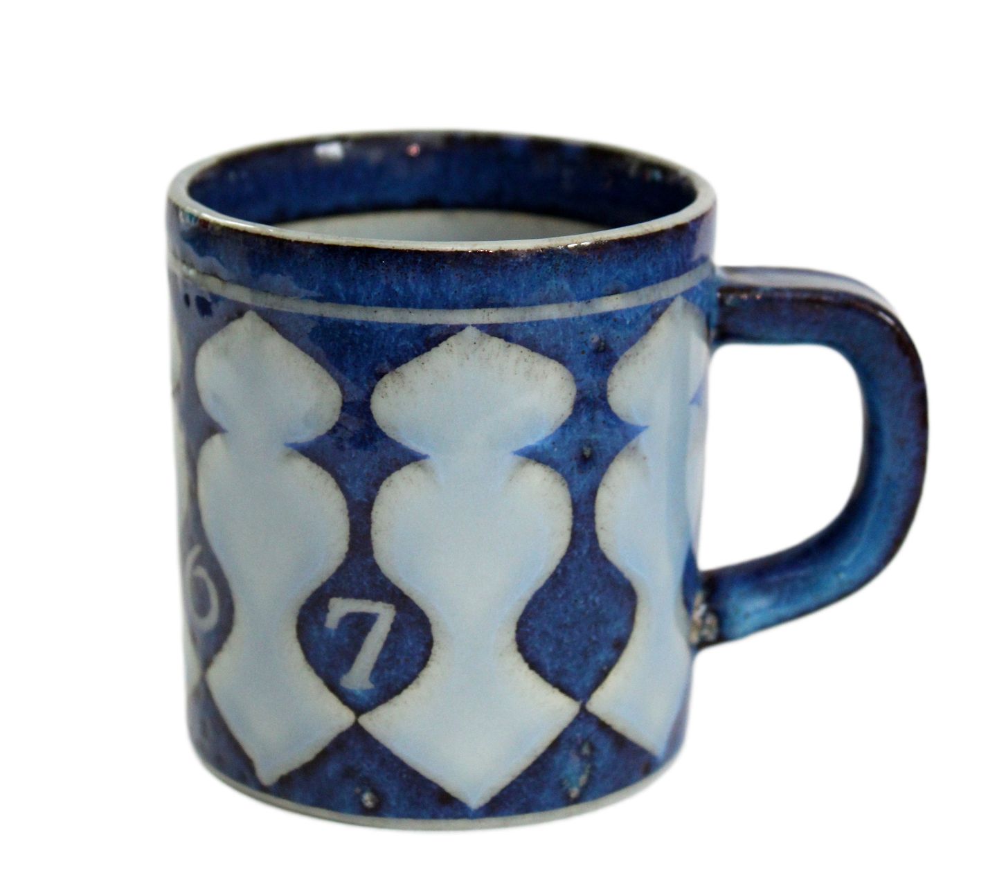 Beskrivelse: Aluminia, Lille årskrus i kunstfajance. Designer Nils Thorson. Dette er det første årskrus. Nr. 3495. Årskrus er produceret fra perioden 1967 til 2014, fra 1968 er det Royal Copenhagen. Højde 7,5 cm. Diameter 6,8 cm. Lidt ujævn bemalet kant. Pris: 700 kr. stk. Lager: 1