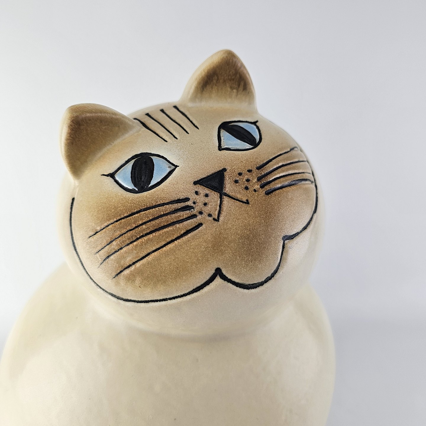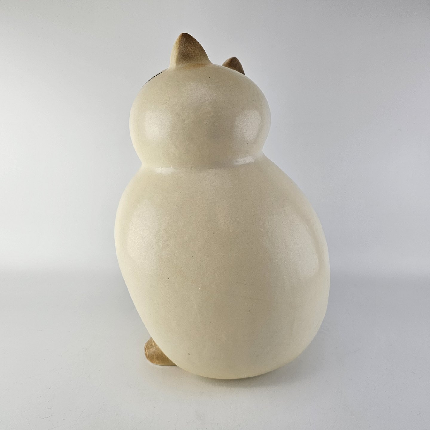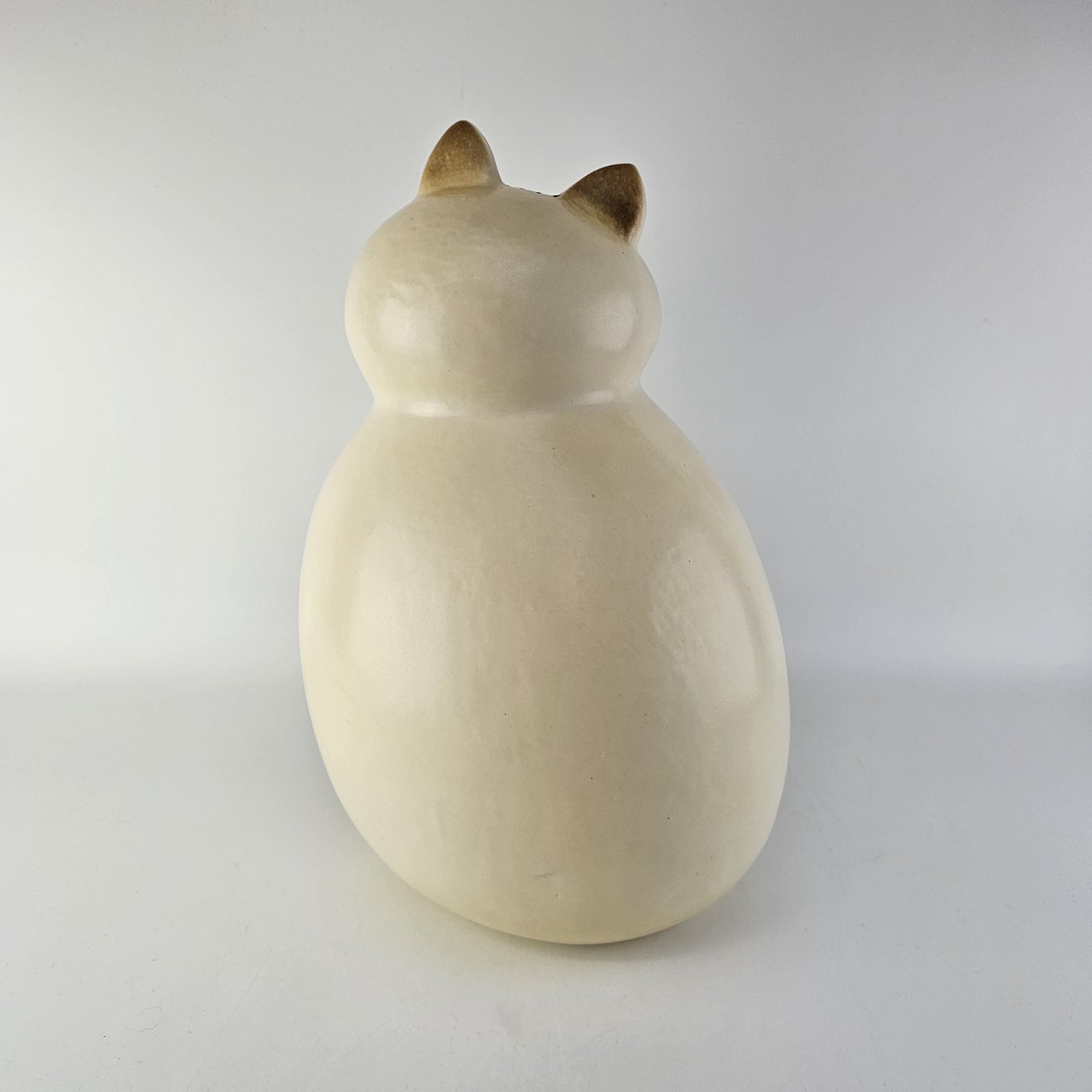 Beskrivelse: Figur i stentøj med motiv af en lys kat af modellen Mia fra år 2010