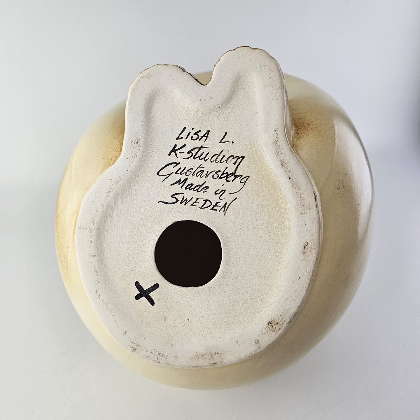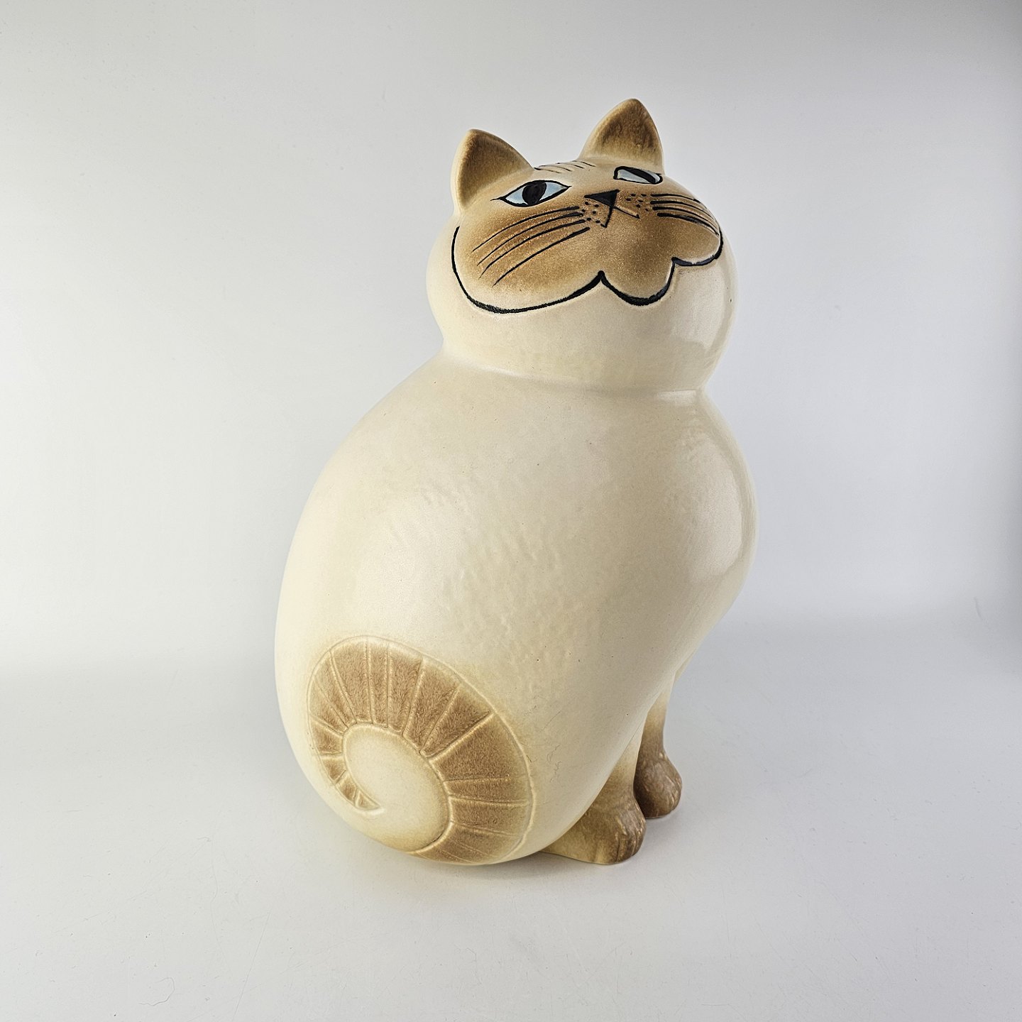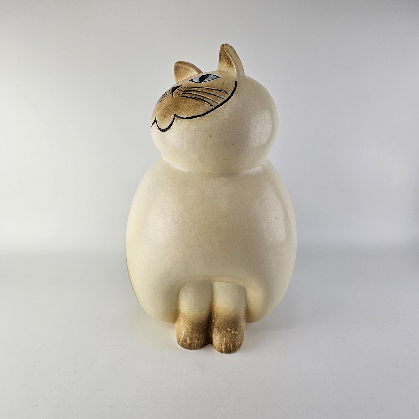 Beskrivelse: Figur i stentøj med motiv af en lys kat af modellen Mia fra år 2010
