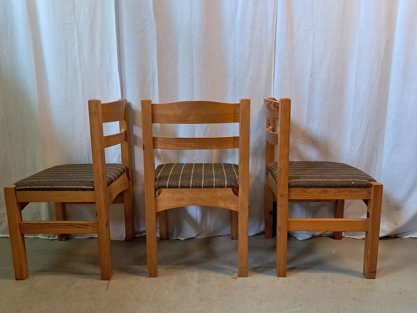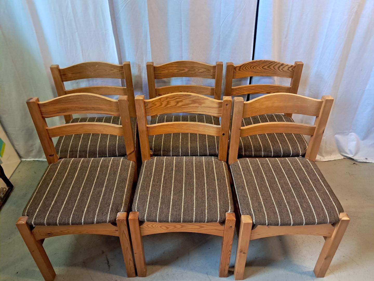 Beskrivelse: 6 Stole i massivt fyrretræ, fra 1980erne.