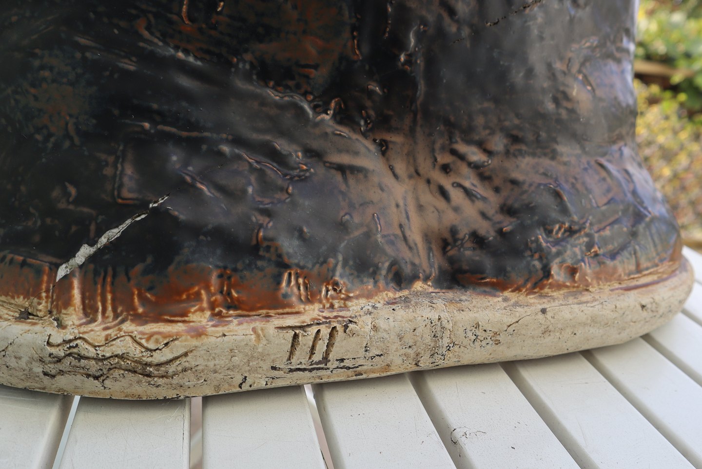 Beskrivelse: 1 stk mulig prototype (No 3) i brun dilou glasur mærket med de tre bølgelinier 6 #III og synlige brændingsrevner/ sammenføjninger - flere billeder kan sendes - eller kom og se den i Mariager