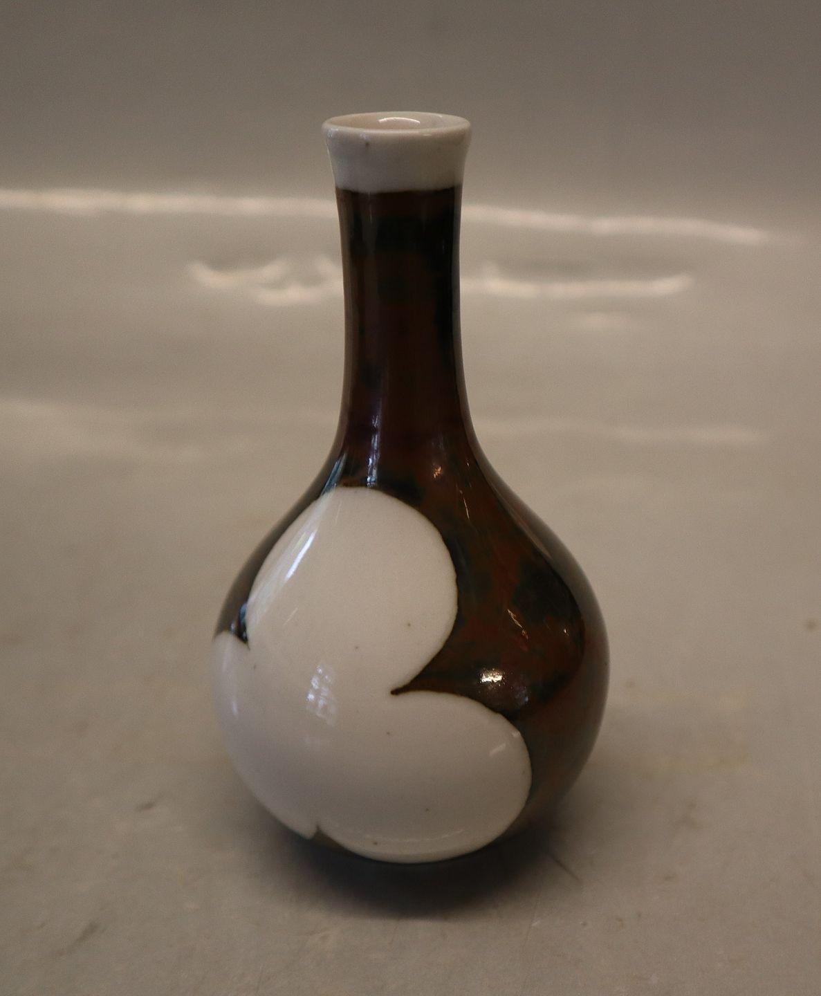 Beskrivelse: Nils Thorsson Miniature Vase brun og hvid glasur 11 cm Royal Copenhagen I fin og hel stand
