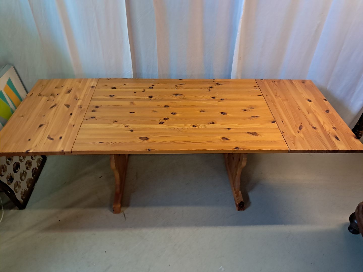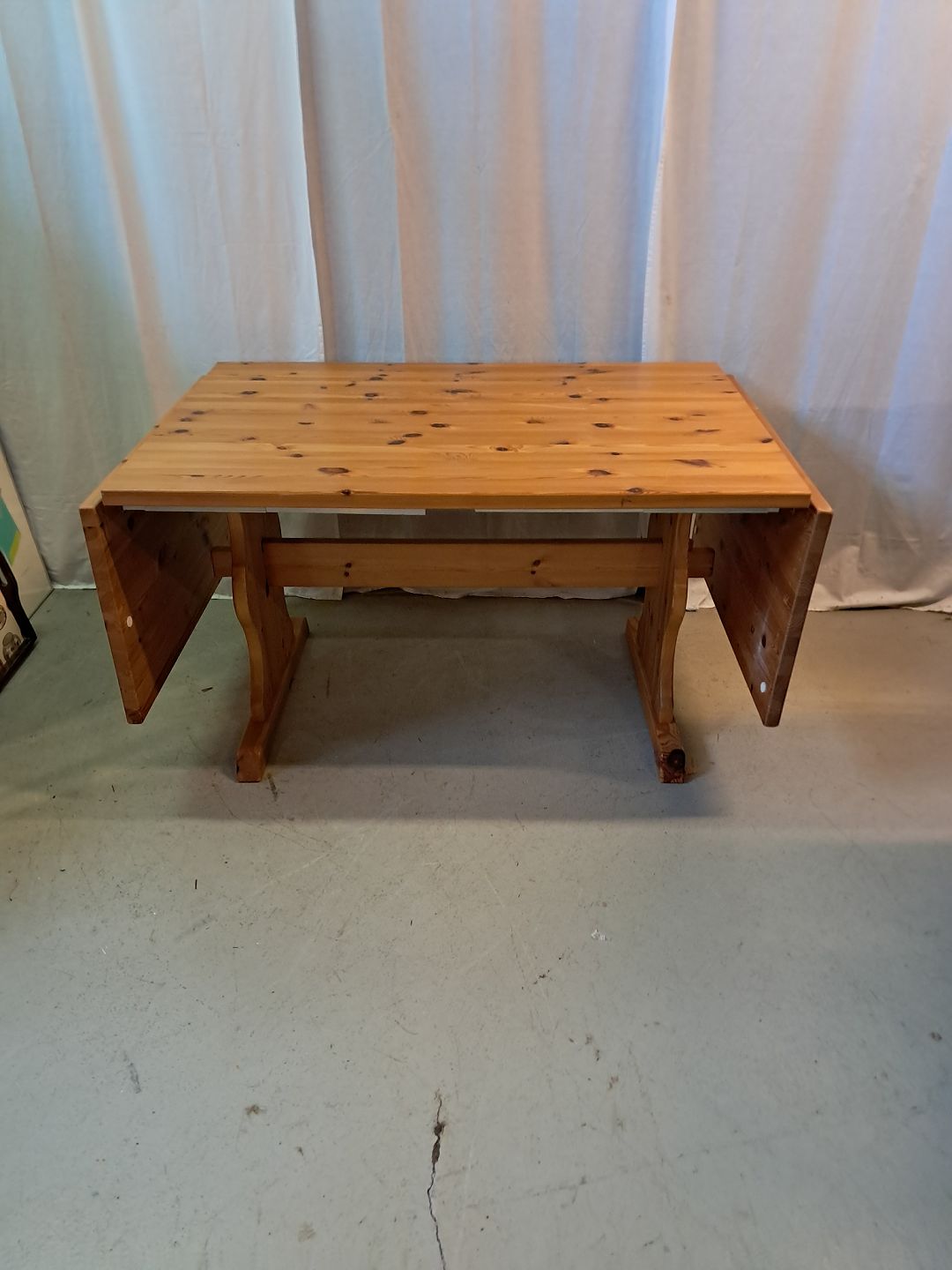 Beskrivelse: Bord i massivt fyrretræ med klapper, fra 1980erne.
