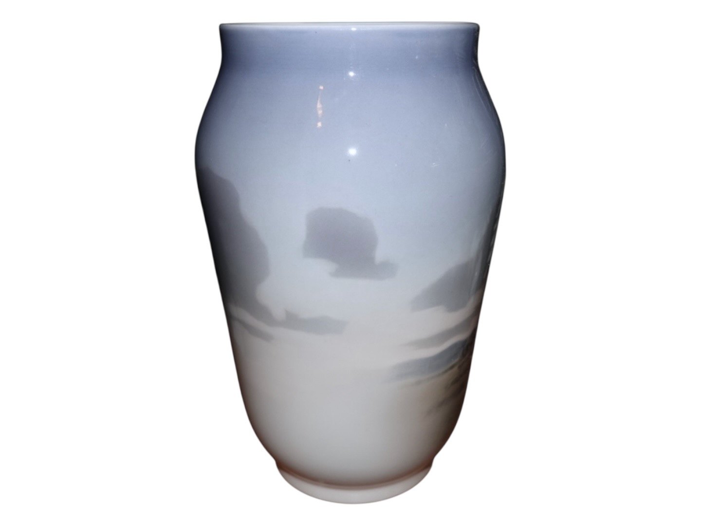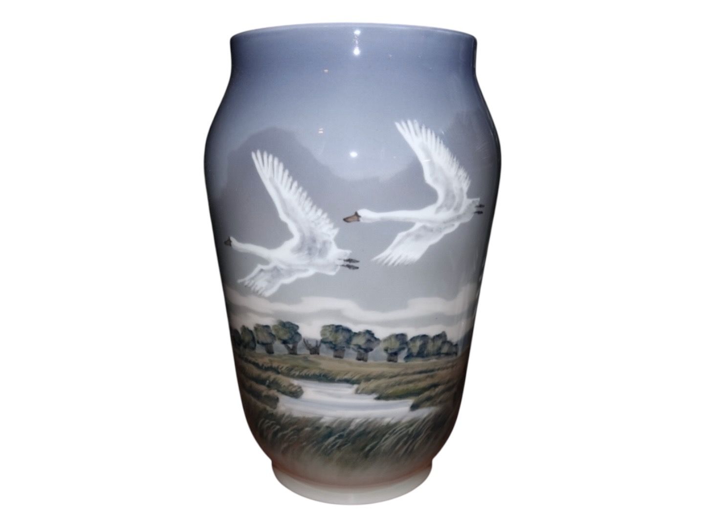 Beskrivelse: Stor Royal Copenhagen vase med flyvende svaner.