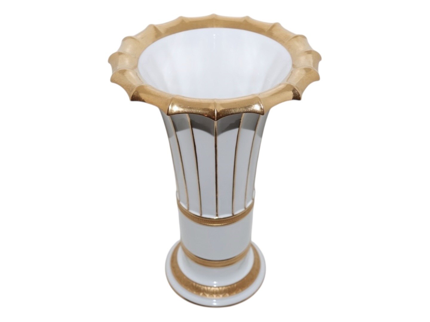 Beskrivelse: Royal Copenhagen Hetsch vase med guldkanter.