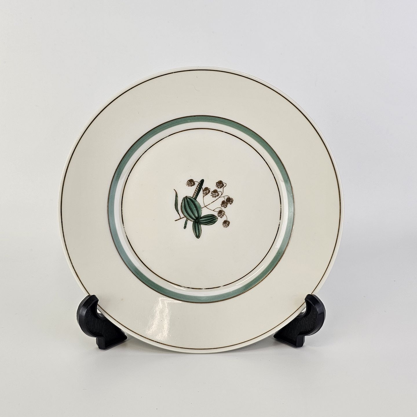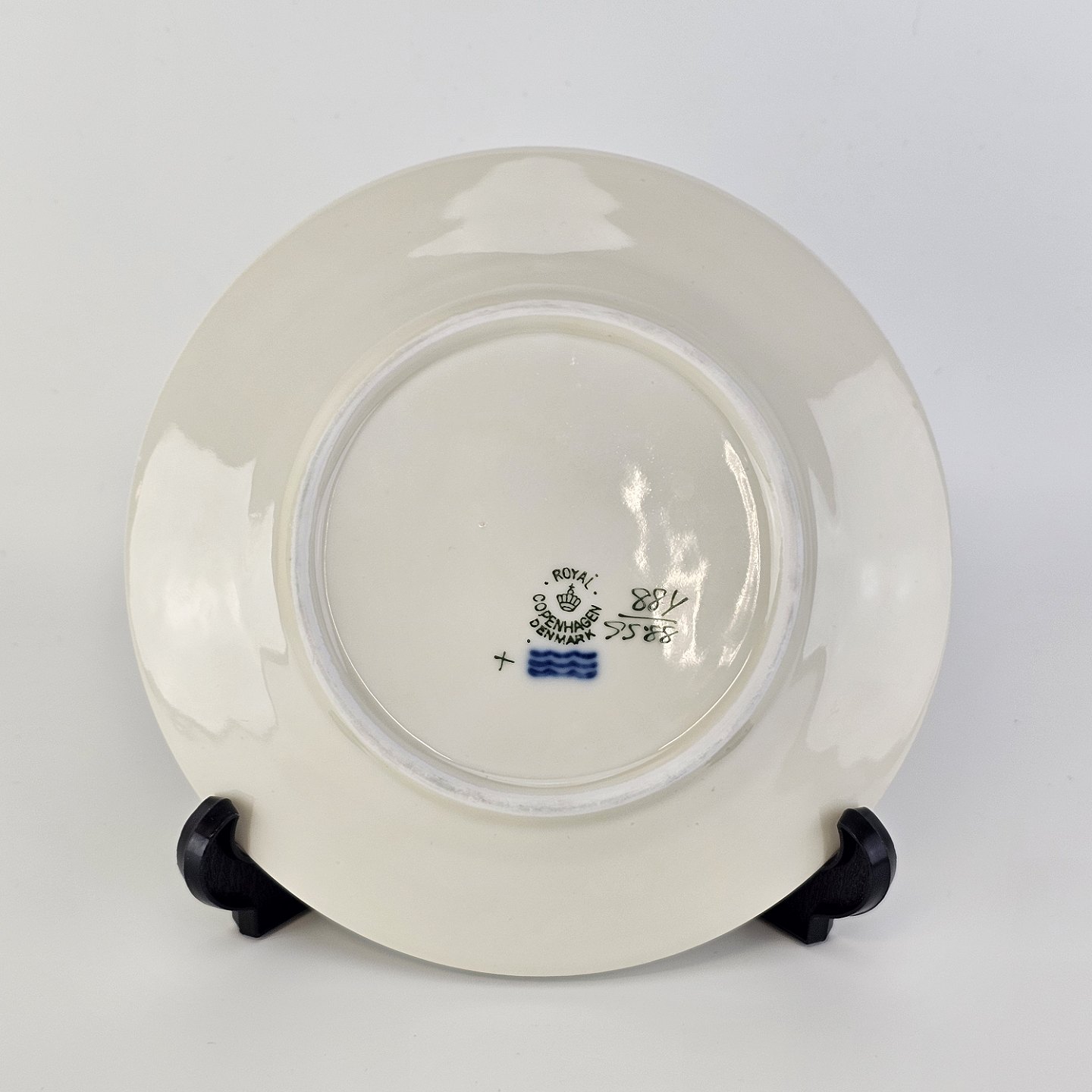 Beskrivelse: Flad kagetallerken i kongelig porcelæn fra stellet Hjertegræs. Nr. 884/9588
