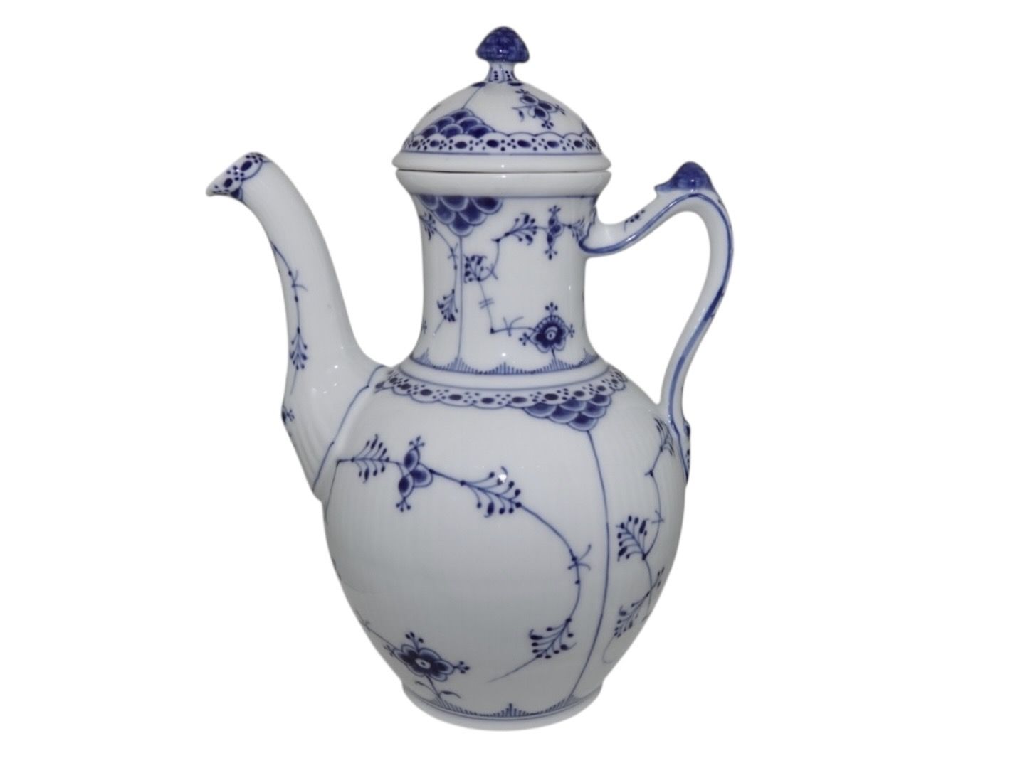 Description: Royal Copenhagen Blue Fluted Half Lace, coffeepot.