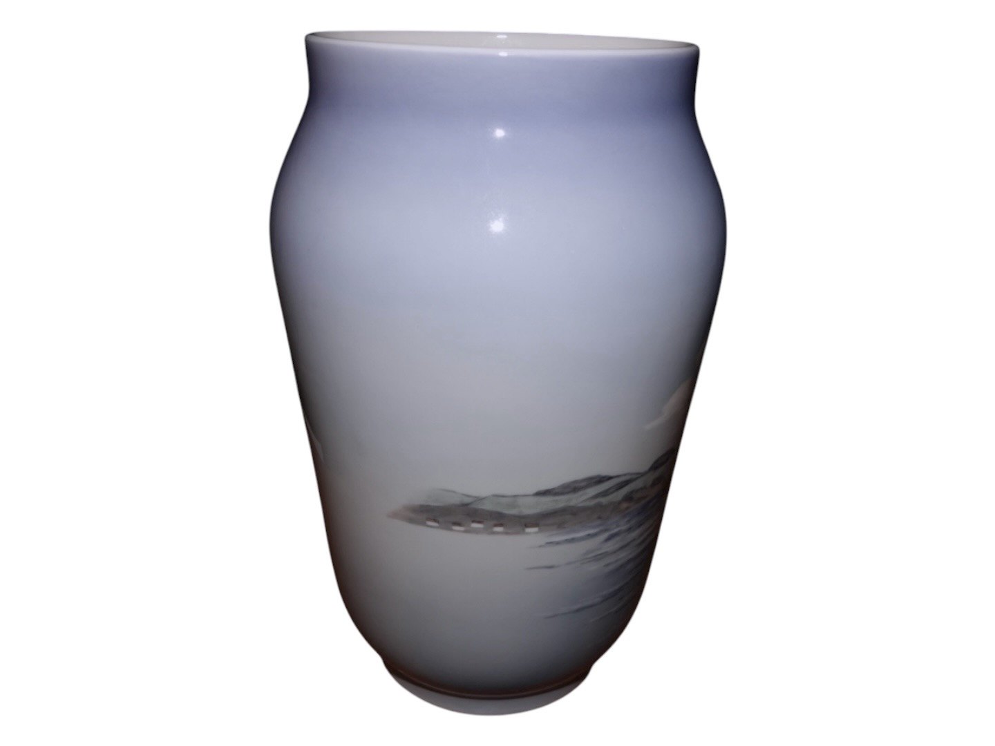 Beskrivelse: Større Royal Copenhagen vase med sejlbåd.