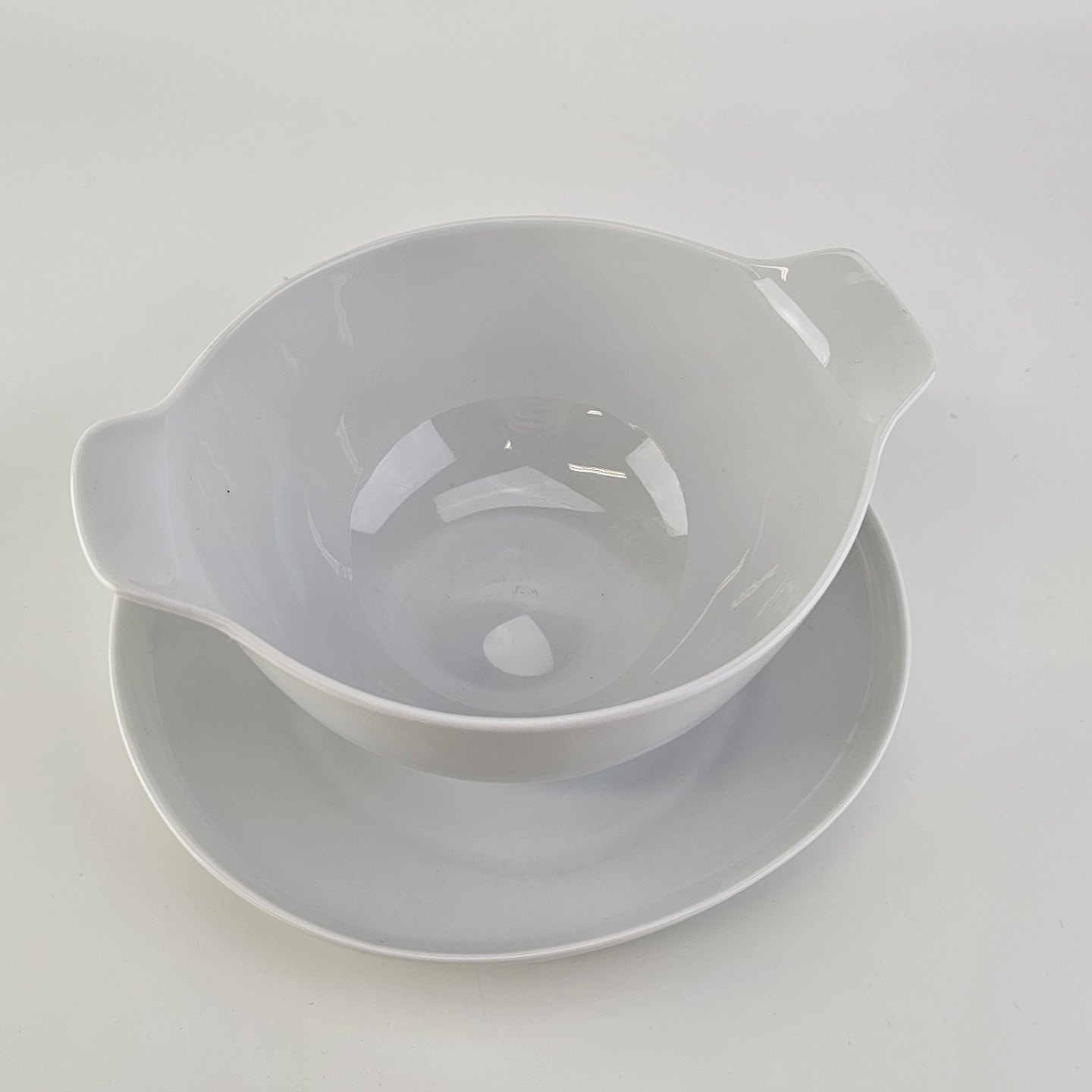 Beskrivelse: Sovsekande i porcelæn fra stellet Hvid Koppel