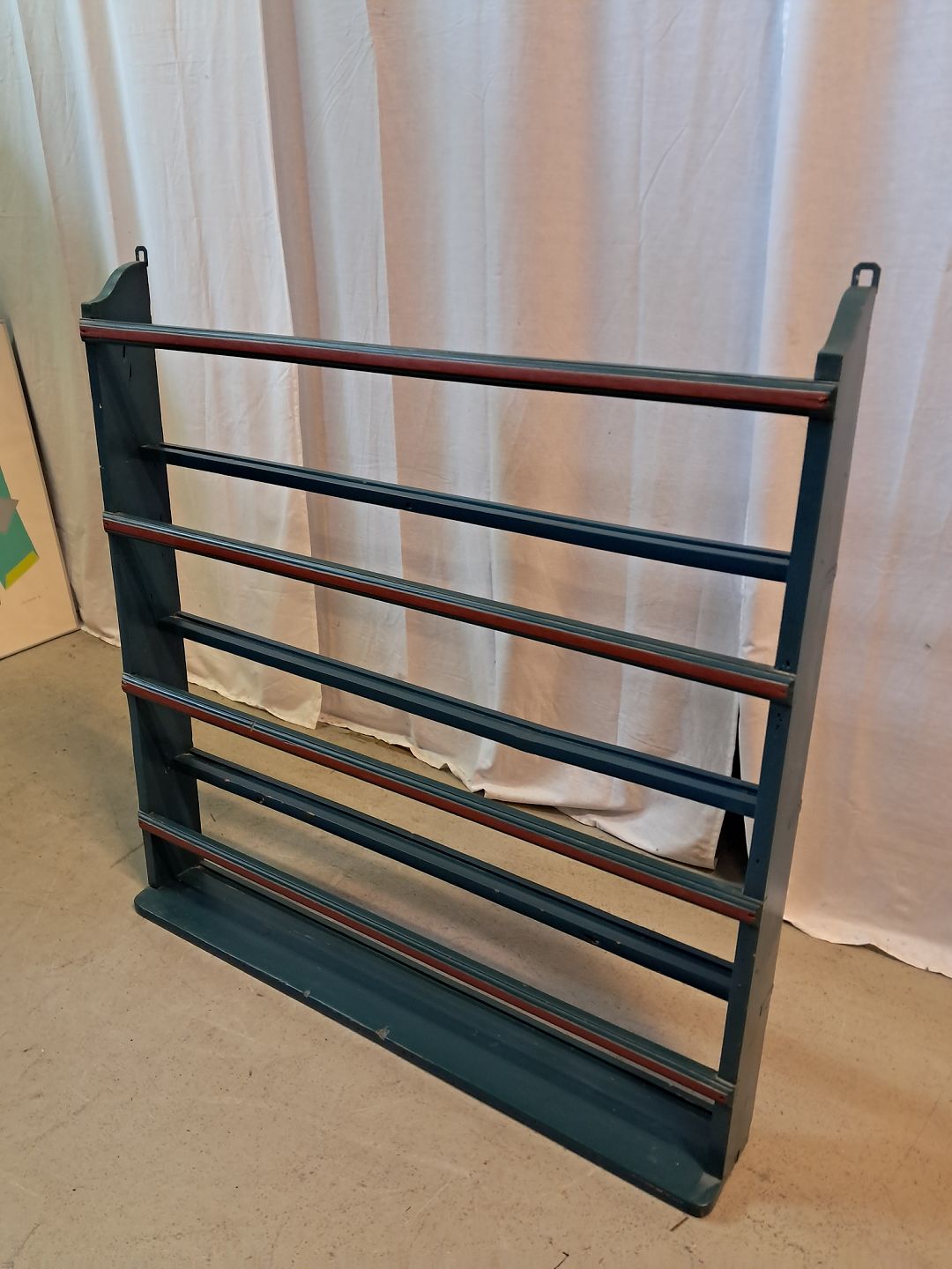 Beskrivelse: Tallerkenrække i malet massivt træ, fra 1920erne.