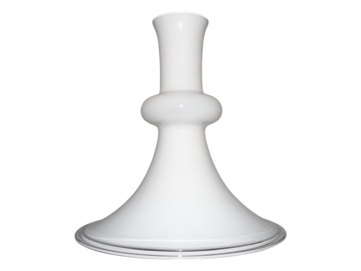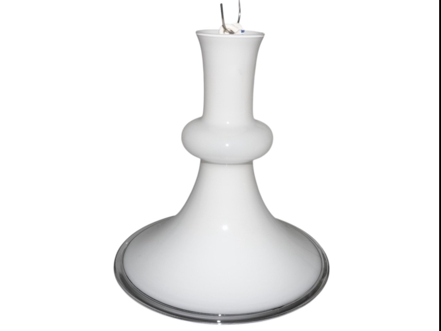 Beskrivelse: Holmegaard / Royal Copenhagen, Etude pendel i hvidt glas med den yderste kant med klart glas.