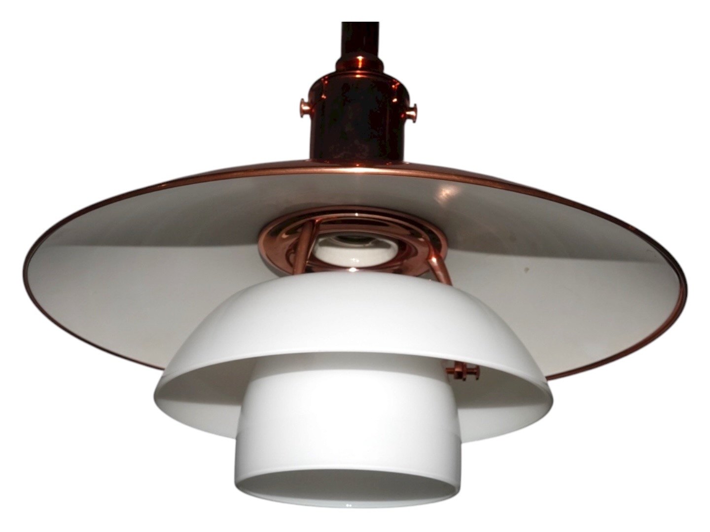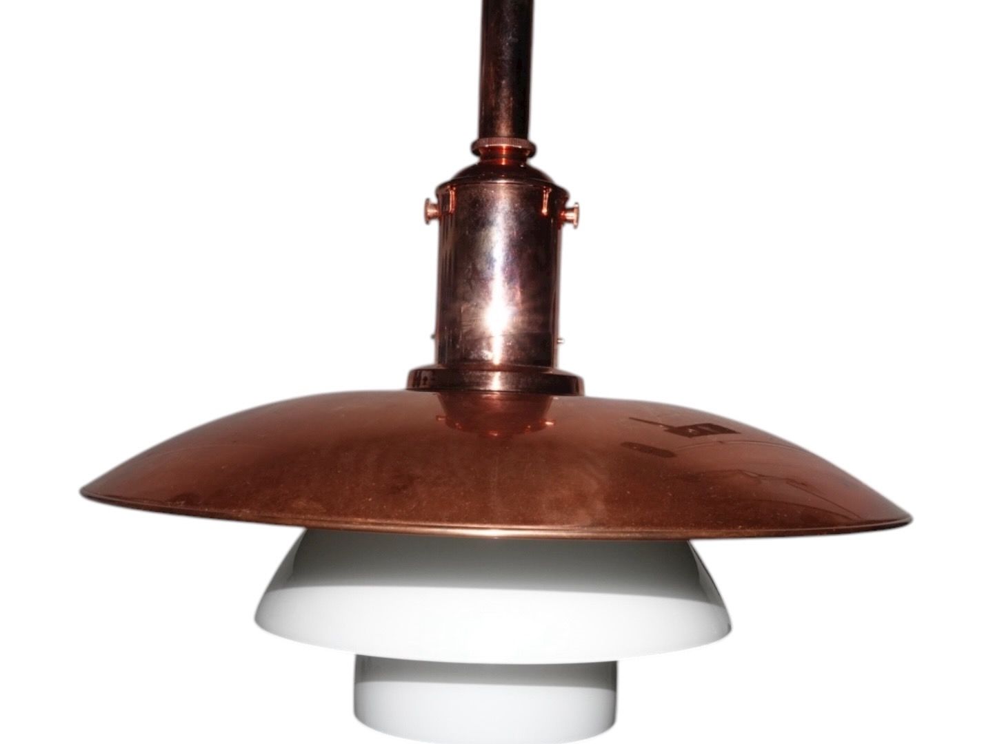 Beskrivelse: PH 3 1/2-3 Kobber og glas loftslampe.