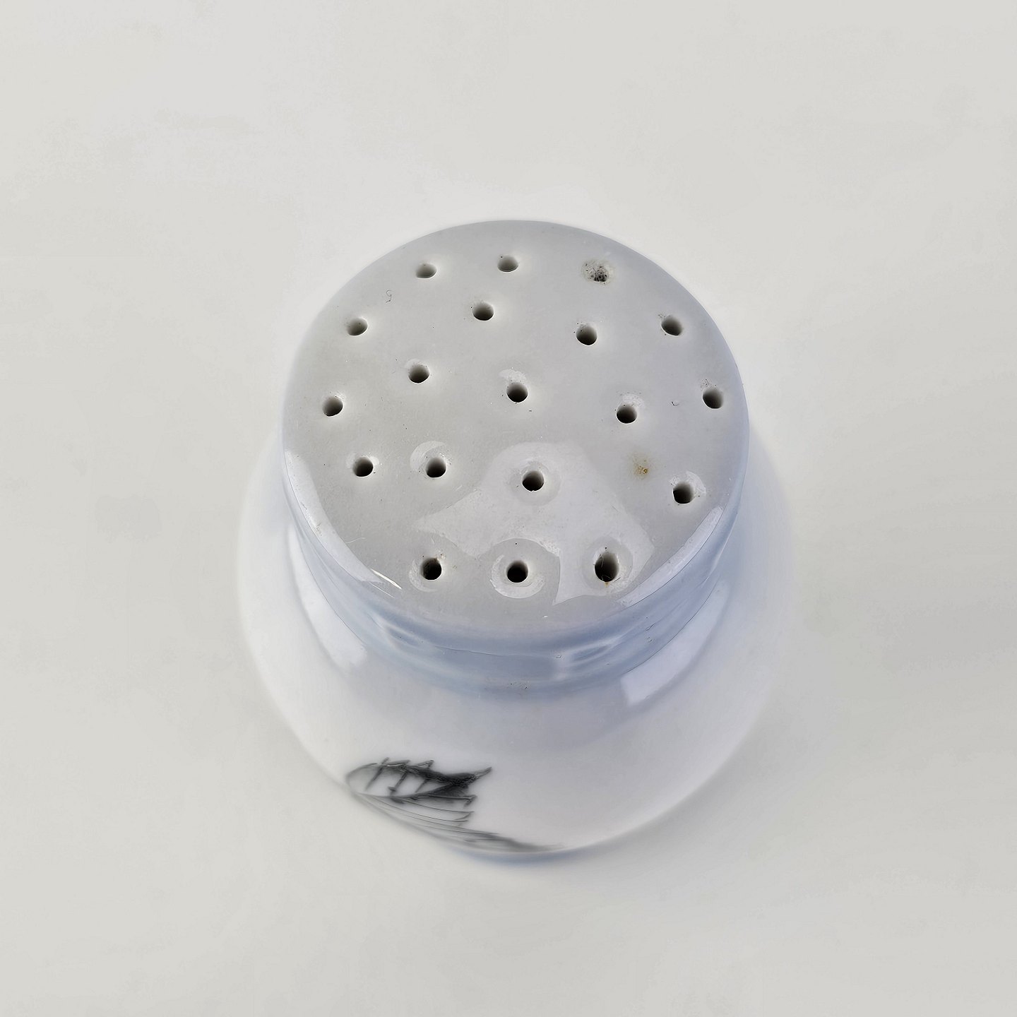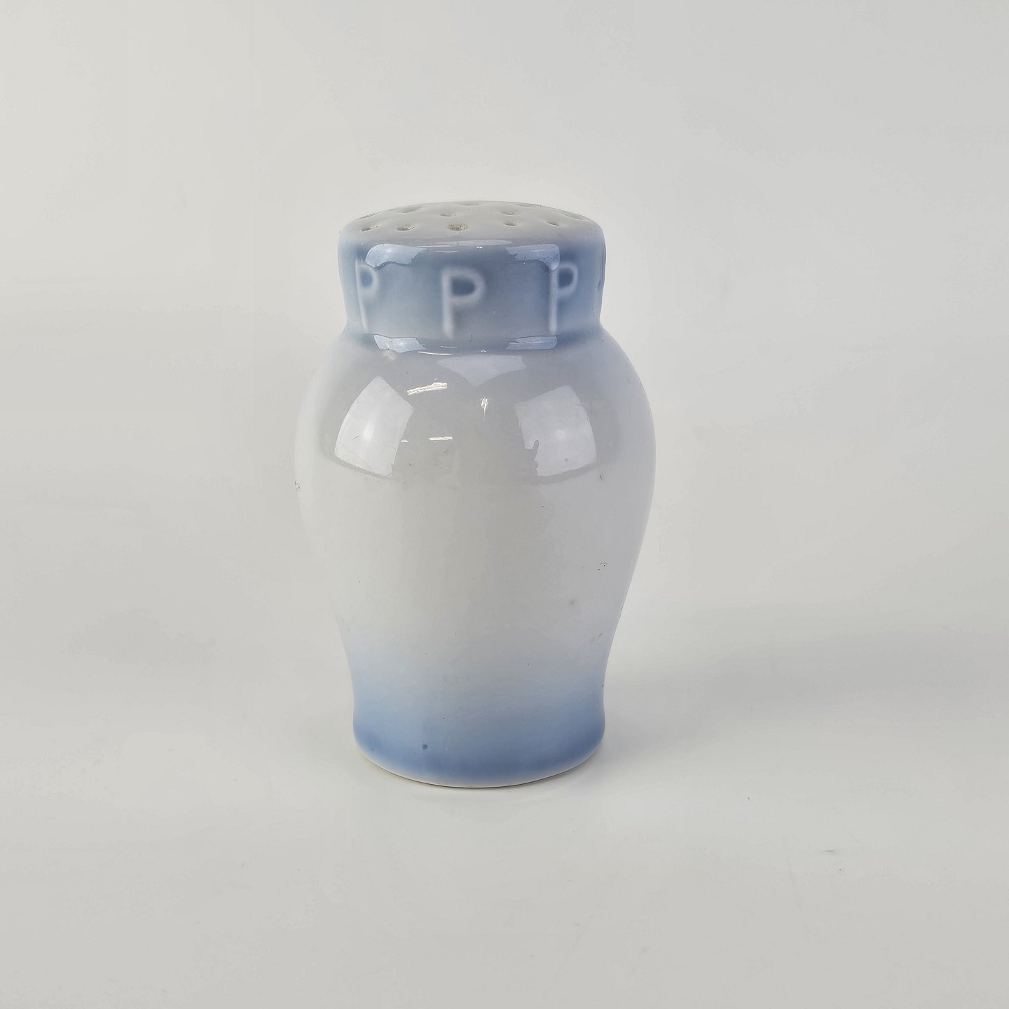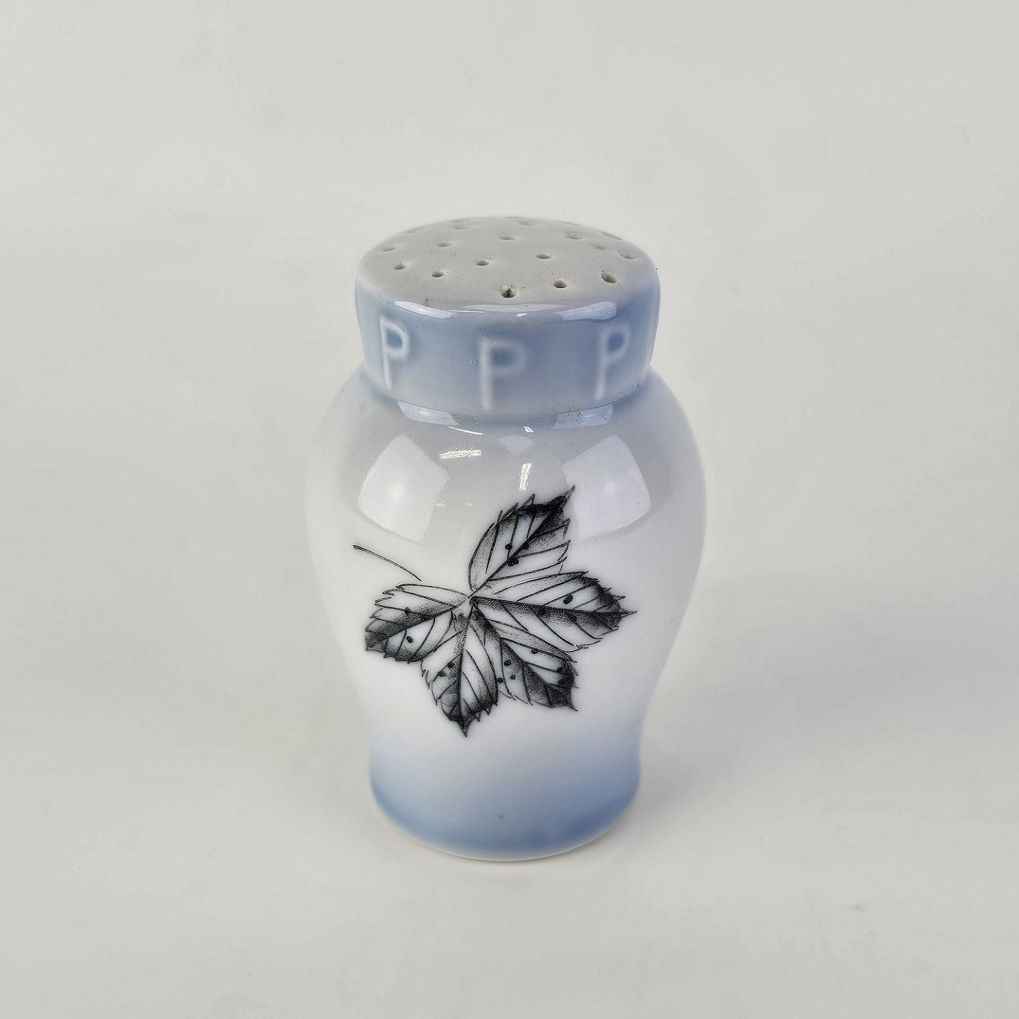Beskrivelse: Peberbøsse i porcelæn fra stellet Løvfald