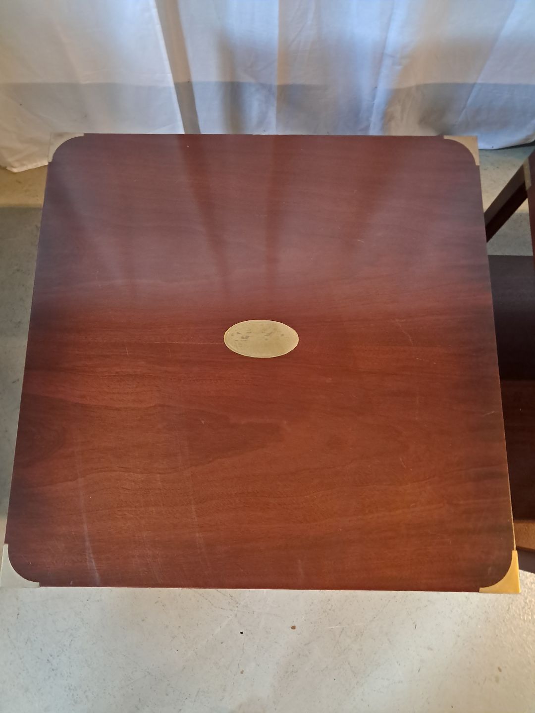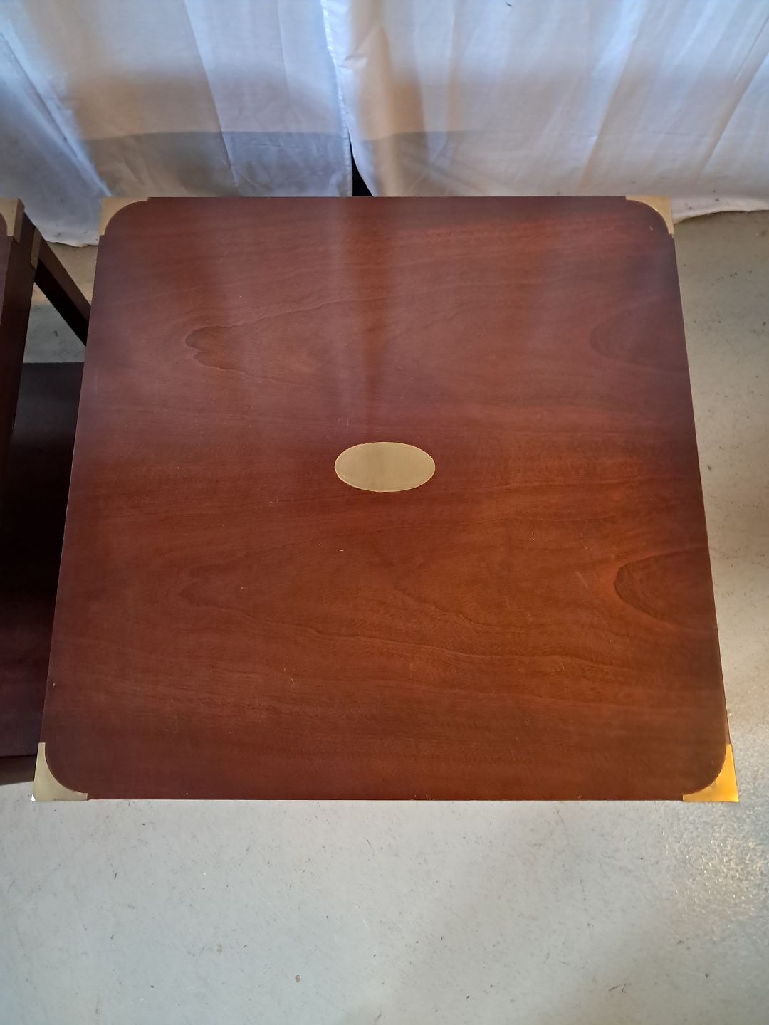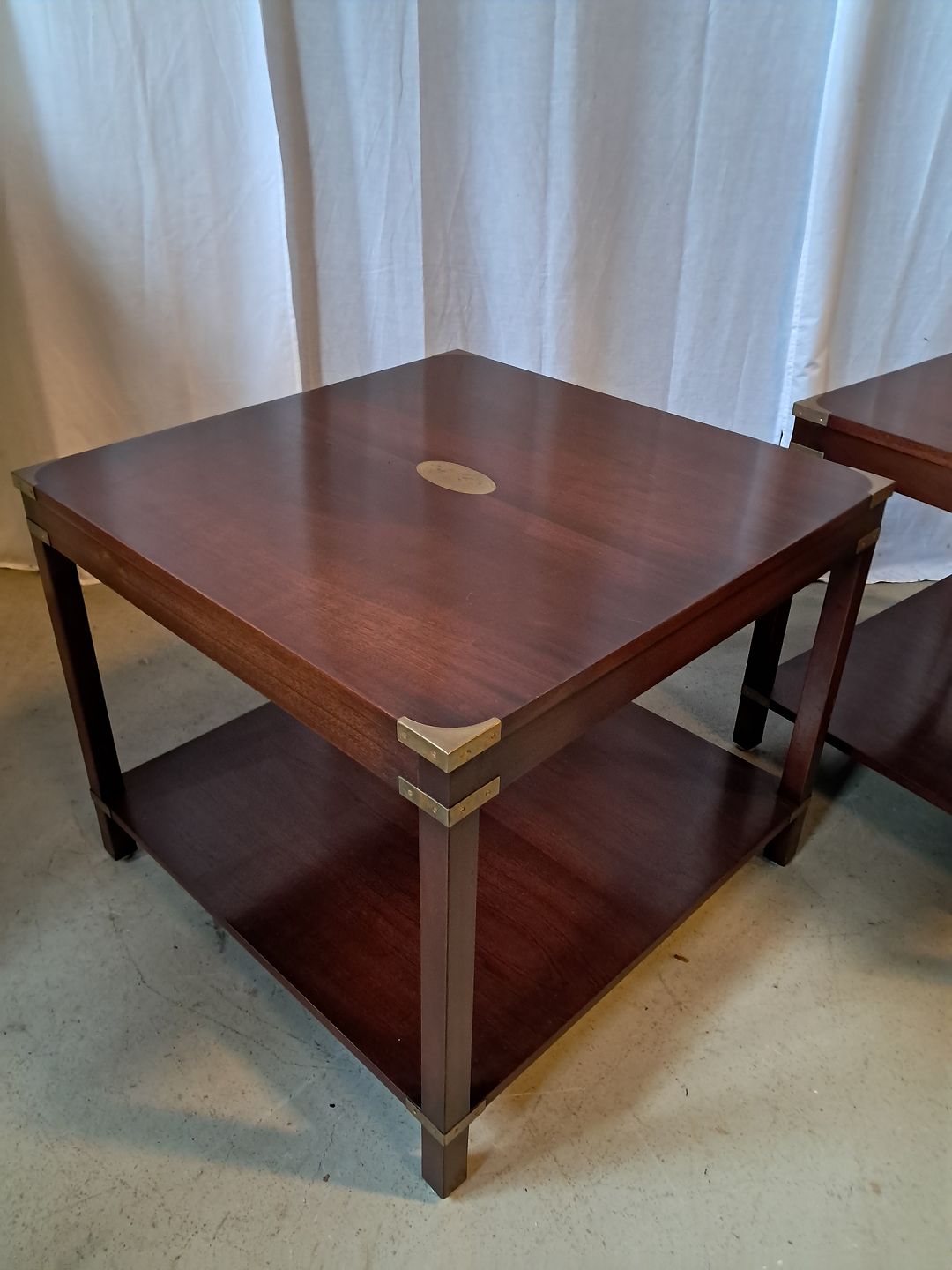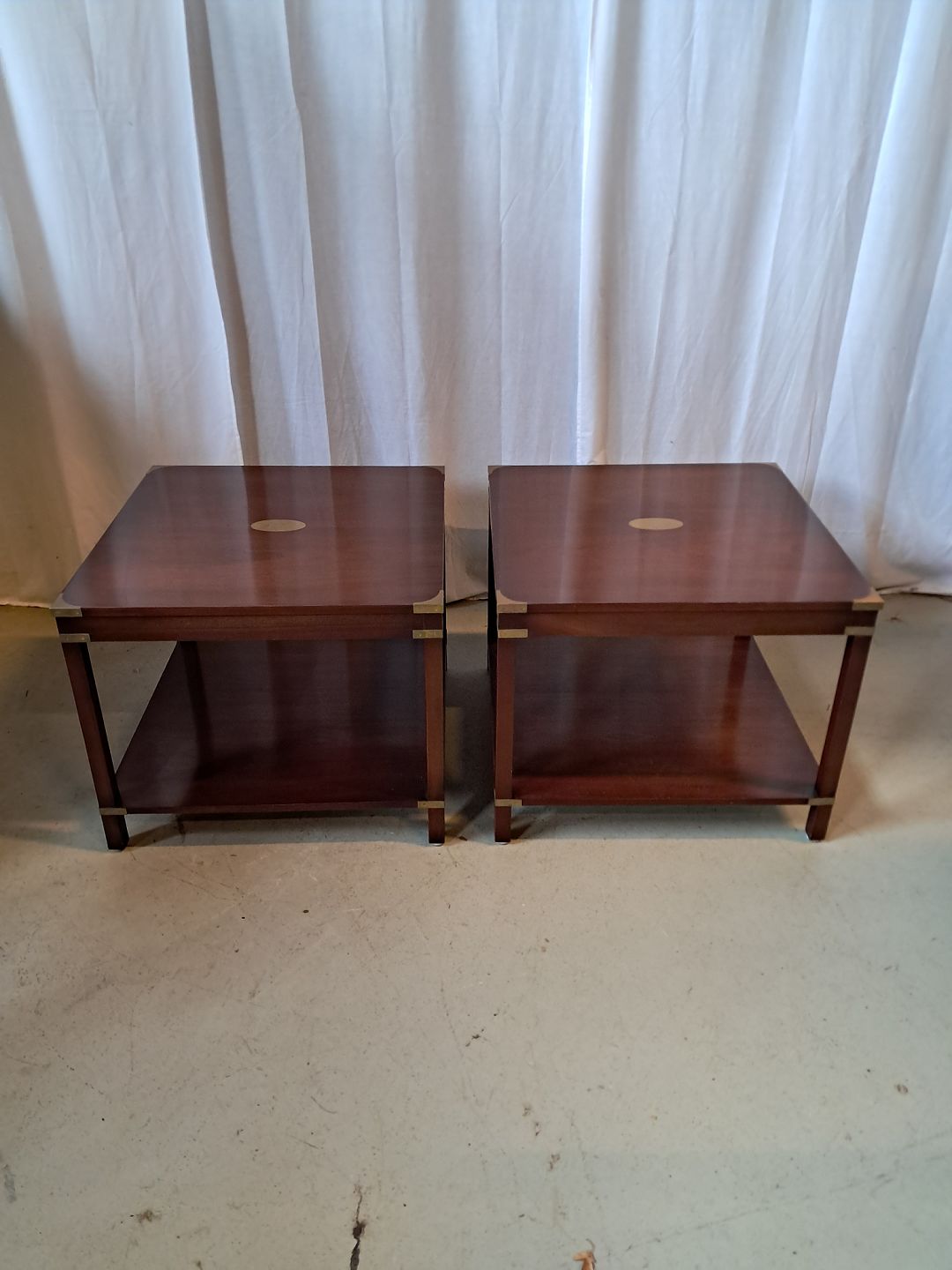 Beskrivelse: 2 Military borde i fineret mahogni, fra 1980erne.