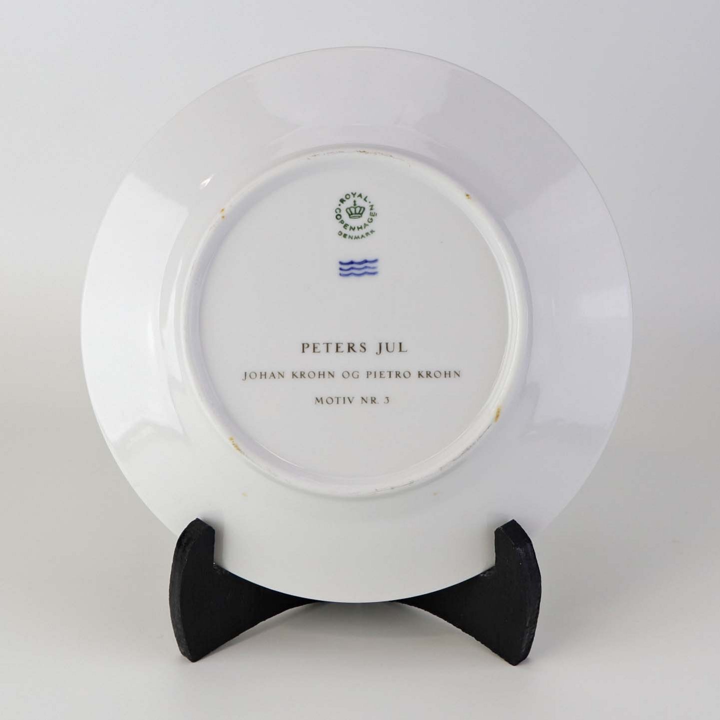 Beskrivelse: Flad desserttallerken i kongeligt porcelæn fra serien Peters Jul med motiv af søster Hanne. Nr. 3