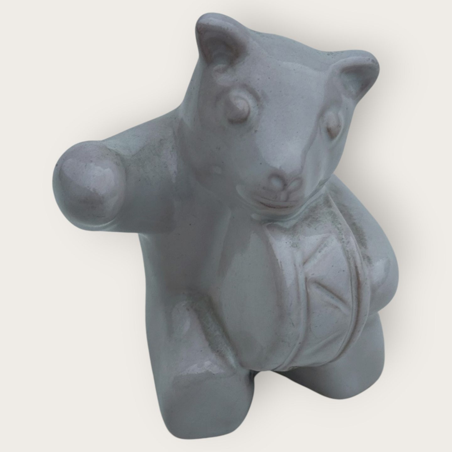 Beskrivelse: Bornholmsk keramik, Hjorth, Bjørne orkester, Tromme, bjørn med hvid glasur, ca. 6,5x5,5cm *Pæn stand*