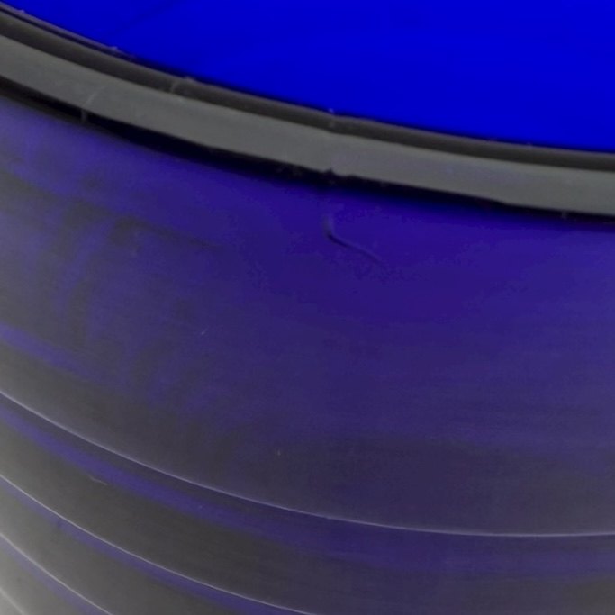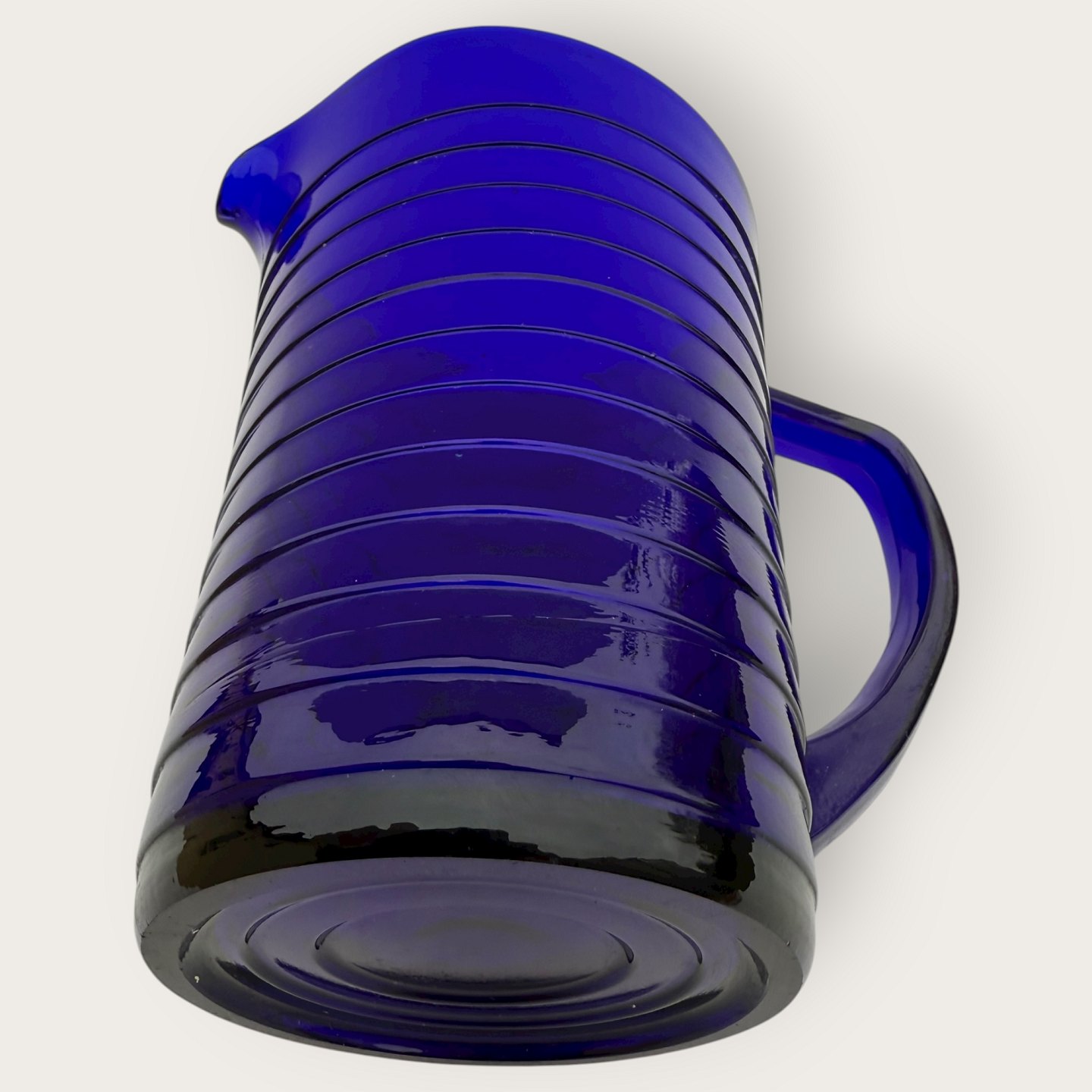 Beskrivelse: Holmegaard, Broksø, kande, Blå, 17x18cm, Design Jacob E. bang *Pæn stand dog med lille produktionsfejl i øverste kant (se sidste foto)*