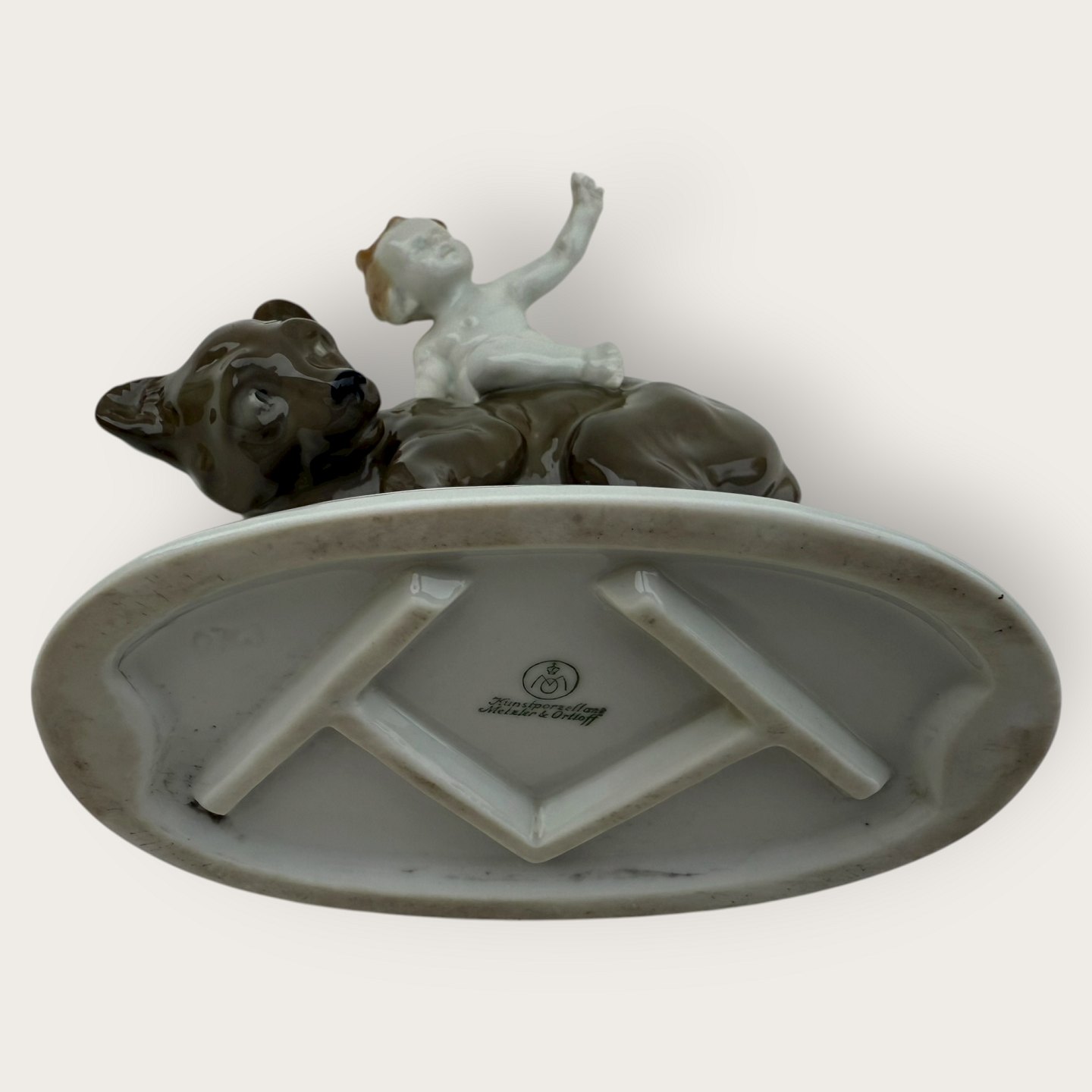 : Metzler & Ortloff, Dreng på bjørn, ca. 12x14,5cm *fin stand*