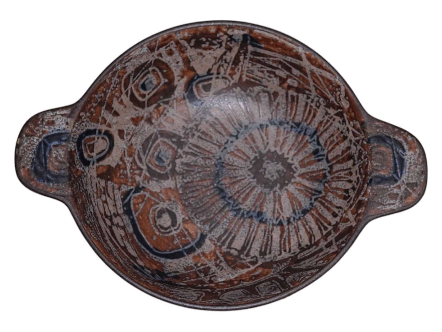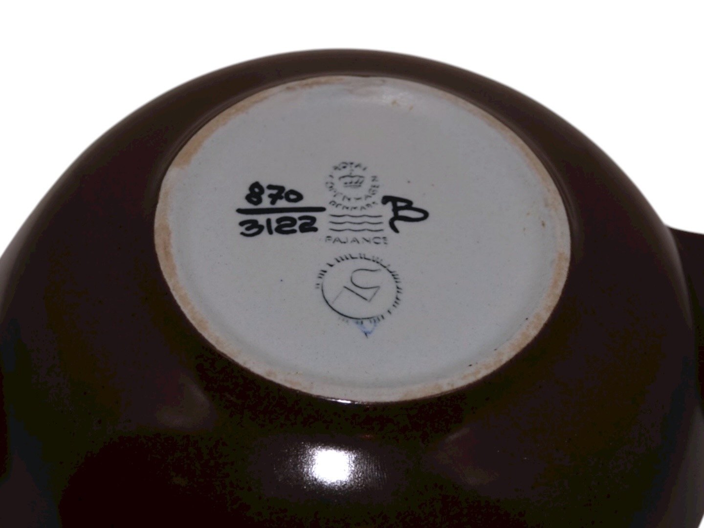 Beskrivelse: Royal Copenhagen Fajance Baca, skål med håndtag.