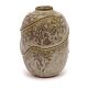 Beskrivelse: Arne Bang stentøjsvase med spættet glasur modelleret i relief Modelnummer 120