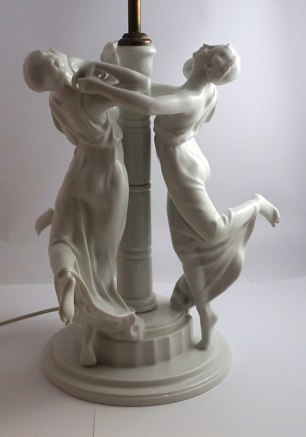 Rosenthal. Porcelain lamp with dancing girls. Porcelain height 32.5 cm, and the lamp is 60 cm total.