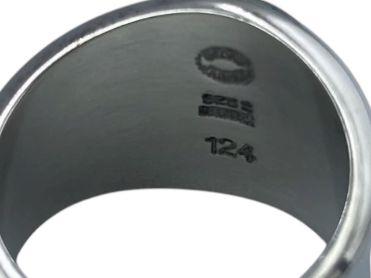 Beskrivelse: Moderne Georg Jensen ring i sterlingsølv med en grøn agatsten.