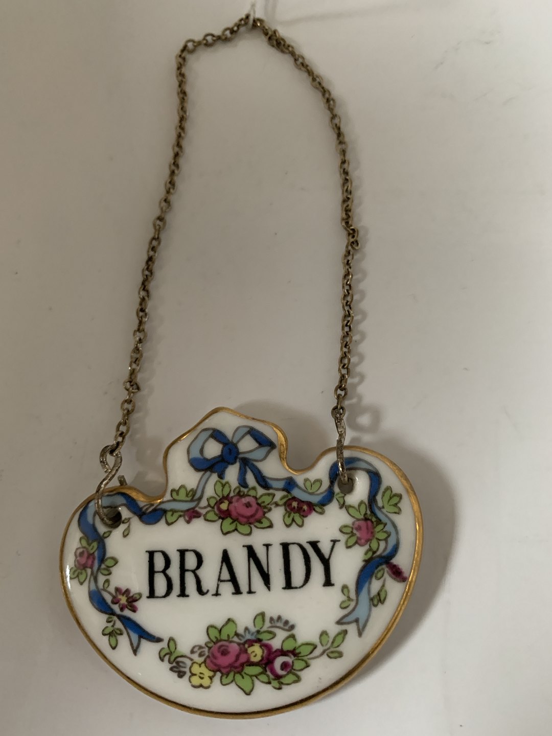 Beskrivelse: Flaske / Karaffel Brandy skilt med kæde