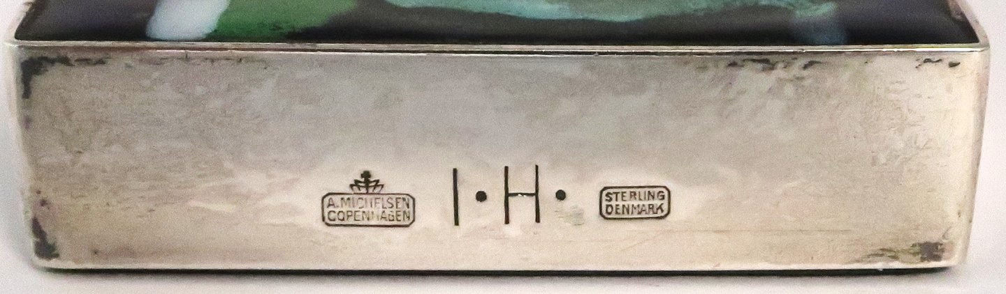 Description: Michelsen. Sterling silver paperweight with enamel (925). Inger Hanmann. Length 13.2 cm. Width 6 cm.