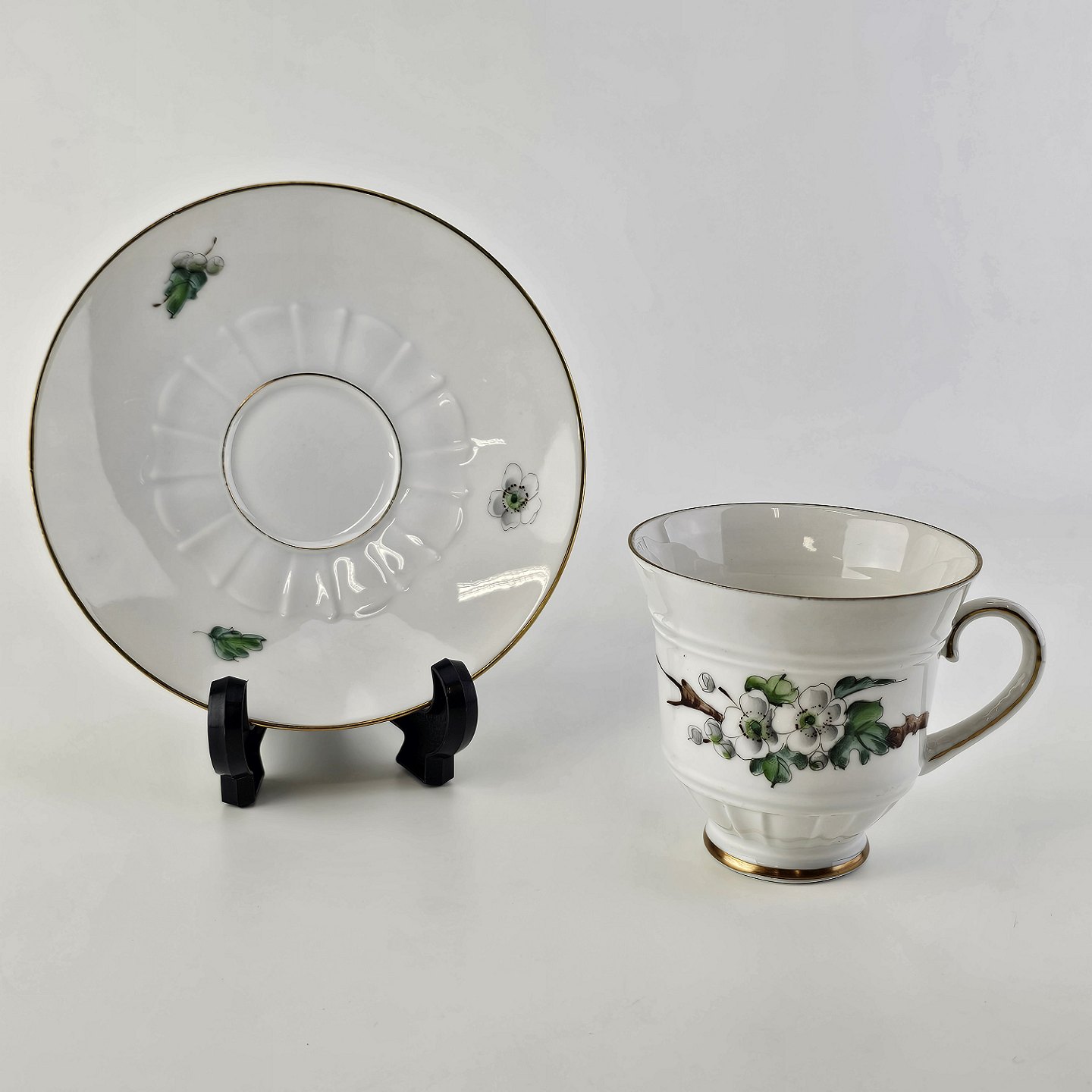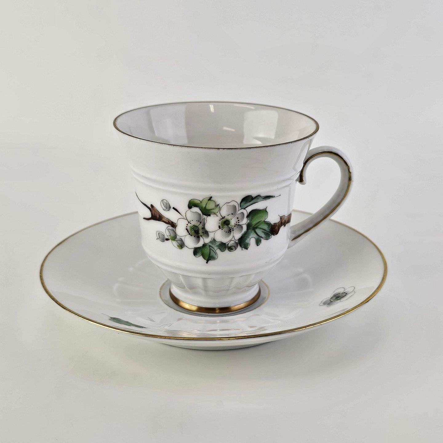 Eremitage er porcelæn dekoreret med hvidtjørn og guldkant