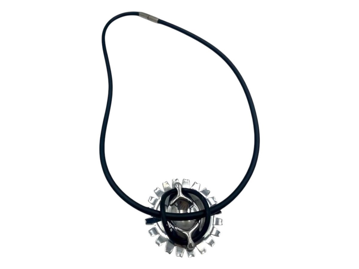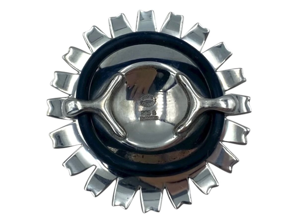 Beskrivelse: Georg Jensen sterlingsølv Sort Daisy Marguerit vedhæng i lædersnor.