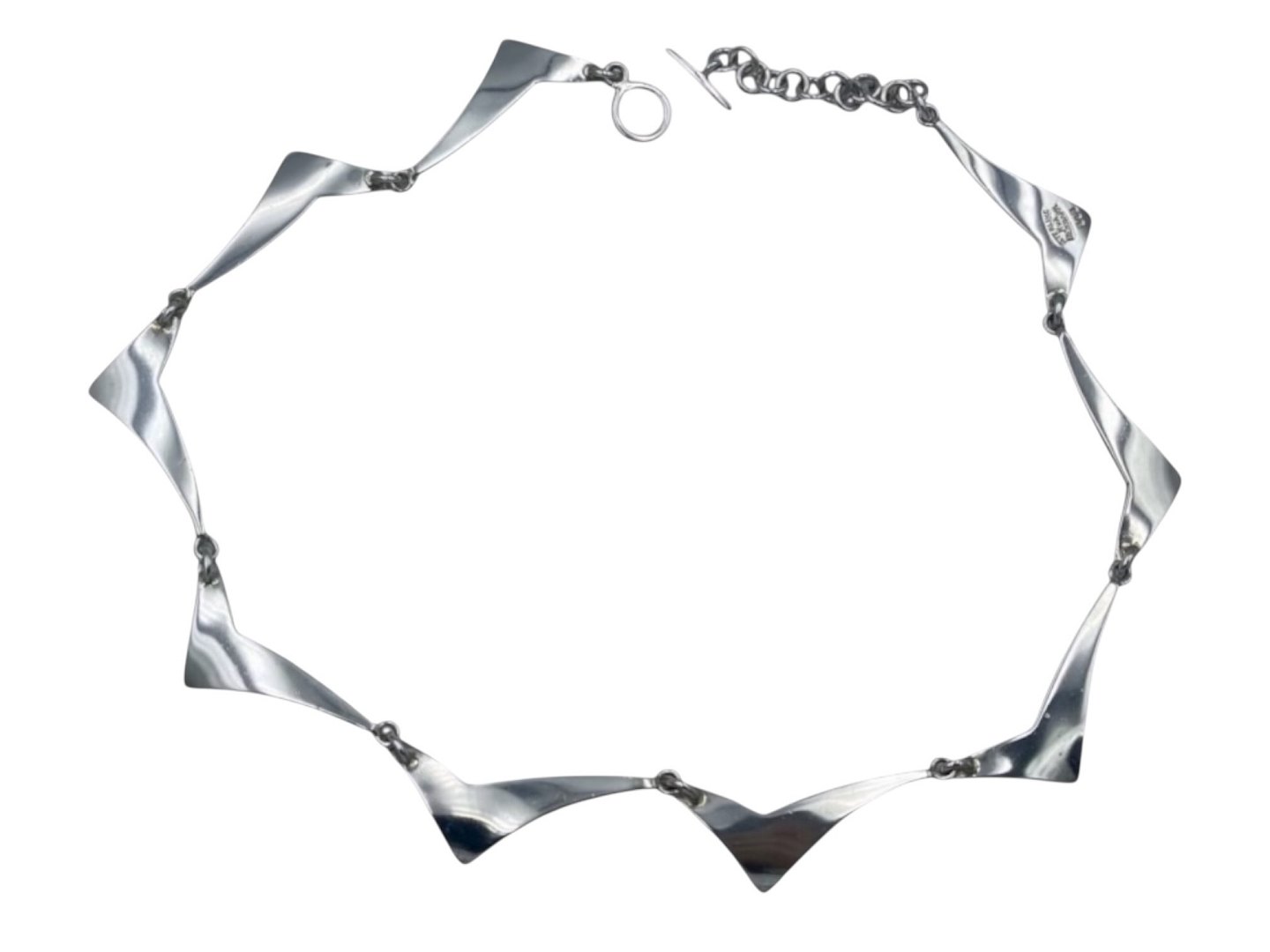 Beskrivelse: Rudolf Andresen sterlingsølv, moderne halskæde i lækker kraftig kvalitet fra ca. 1960 til 1970.