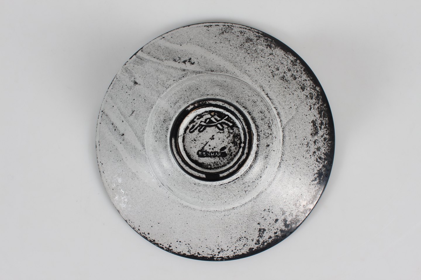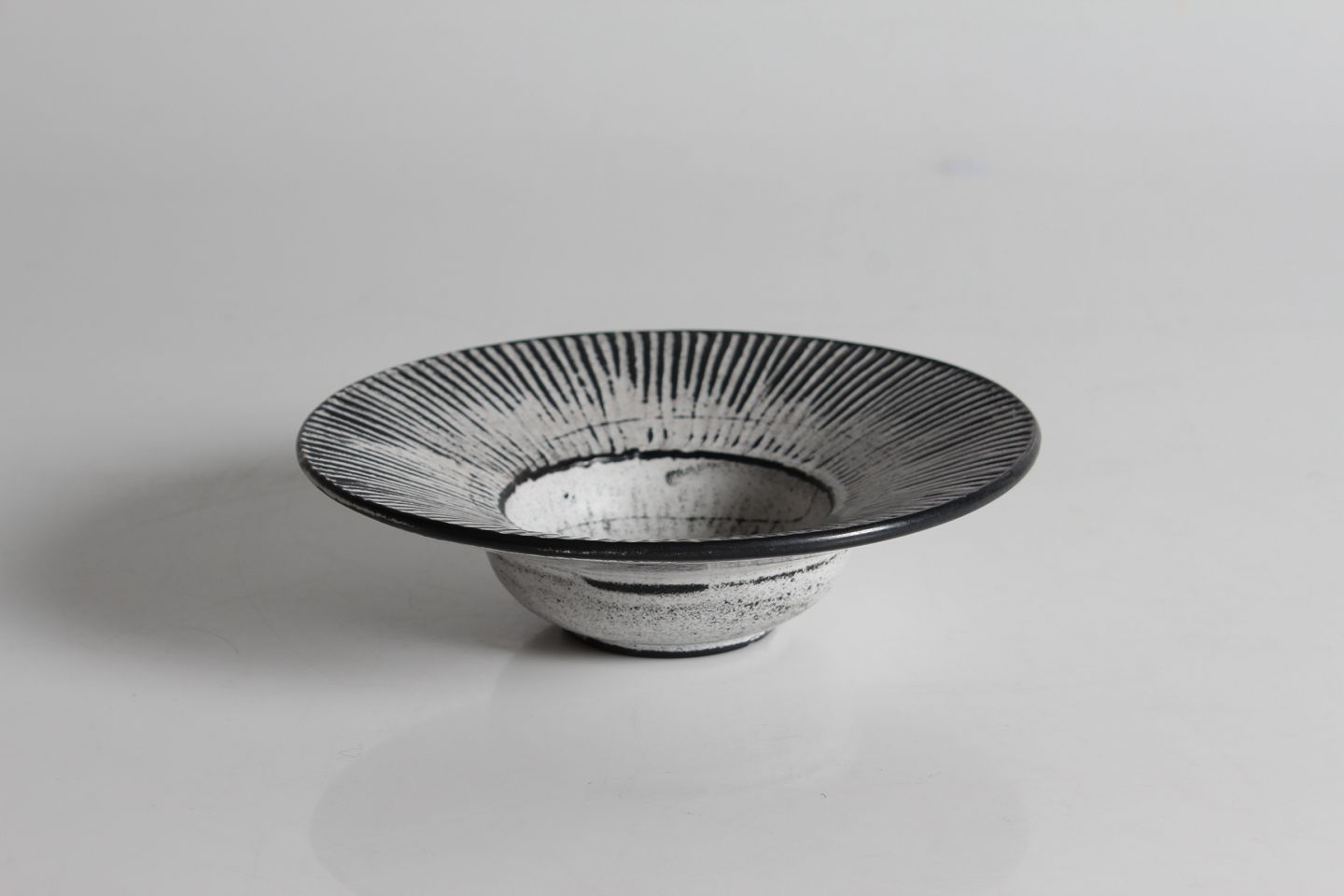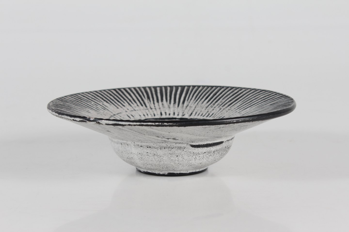 Rund præstekrave skål med askegrå/sort glasur