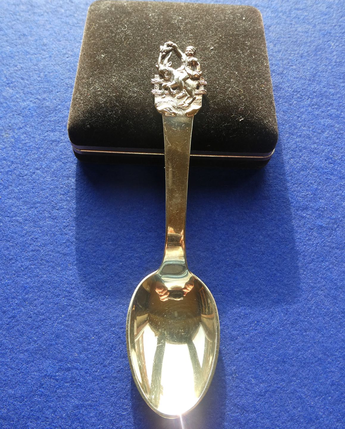 Klodshans børnebestik i forgyldt sølv. Barneske